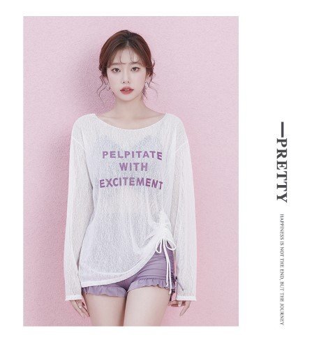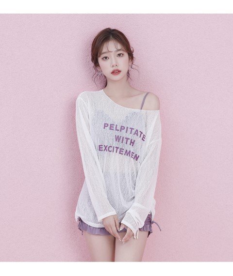 ・セパレート水着とロゴ入りシアーロンTの3点セット。セパレート水着はフリルが効いて可愛いです。