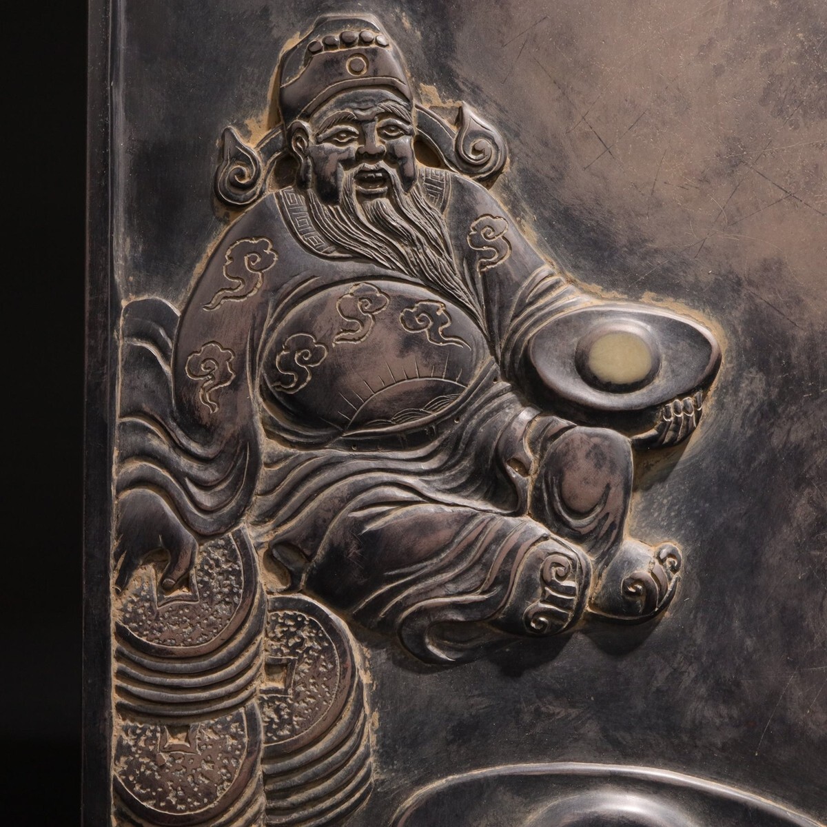 「古端石硯 招財納福文房端渓硯 杜李銘 明末清初」手彫り 文房四宝 書道具 中国古美術 旧蔵出