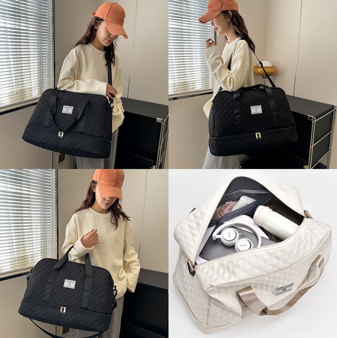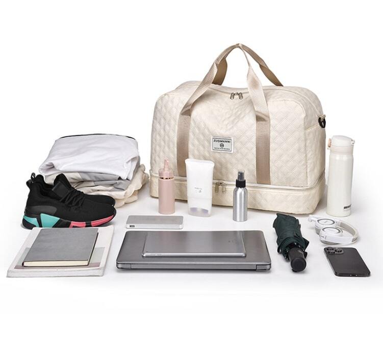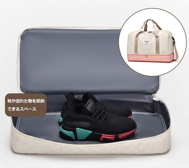 バッグの下部には、ファスナー付き、靴や濡れた物を収納できるスペースがあり、とても便利です!