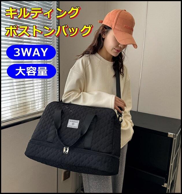 3WAY(肩掛けバッグ・斜め掛けバッグ・手提げバッグ)のオシャレなキルティングボストンバッグです。