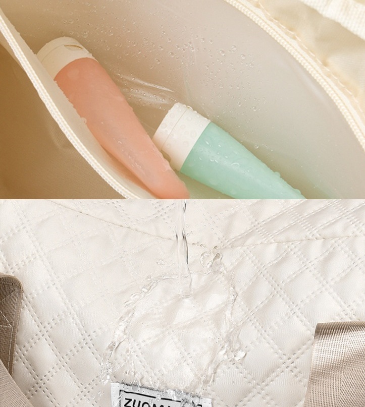 防水性に優れた撥水加工生地で雨に濡れても安心。A4サイズにも対応、iPadやA4書類、本や着替え、傘、ペットボトル等いっぱい収納できます。
