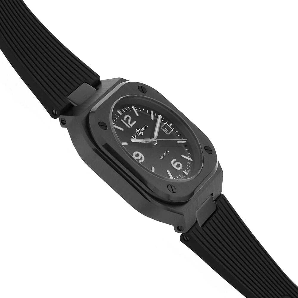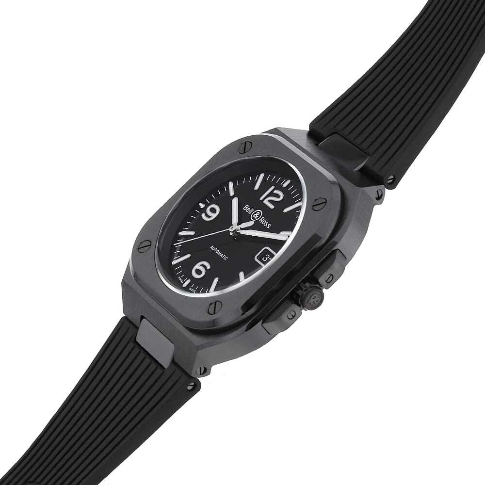 モデル情報 | 航空機のダッシュボードから着想を得た「BR 05」シリーズの1つで、ブラックセラミックケースとラバーストラップの組み合わせが、モダンで力強い印象を与えます。セラミック素材は、腐食や傷に強く、スティールよりも硬くて軽量で、肌にも優しい低刺激性を持つため、快適な装着感を実現しているモデルです。 |