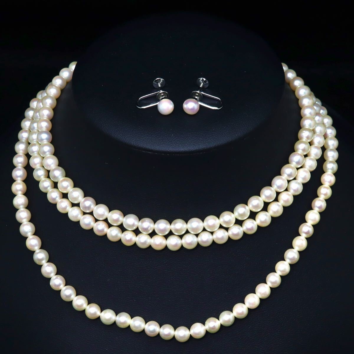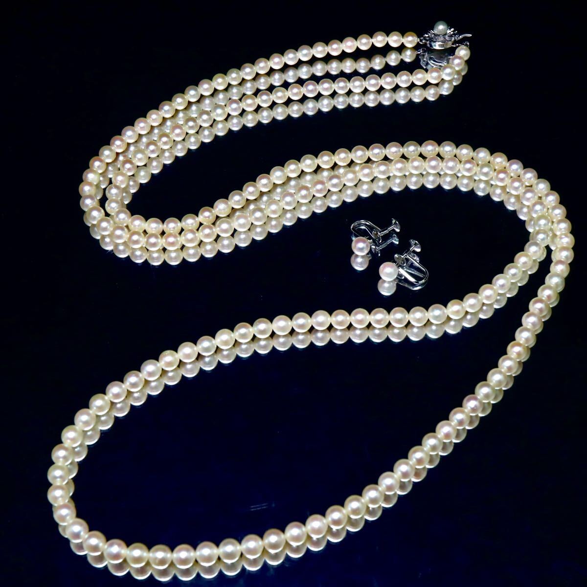 〈アコヤ本真珠ロングネックレス&イヤリングおまとめ〉