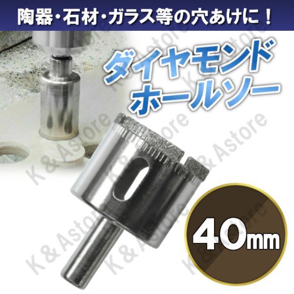 ダイヤモンドホールソー 40mm ホールカッター ガラス タイル 石材 陶器 磁器 穴あけ ホルソー コアビット 電動ドリル ドライバー 切削工具