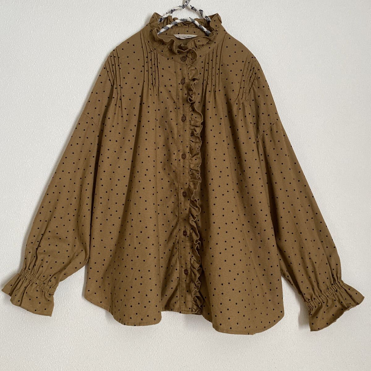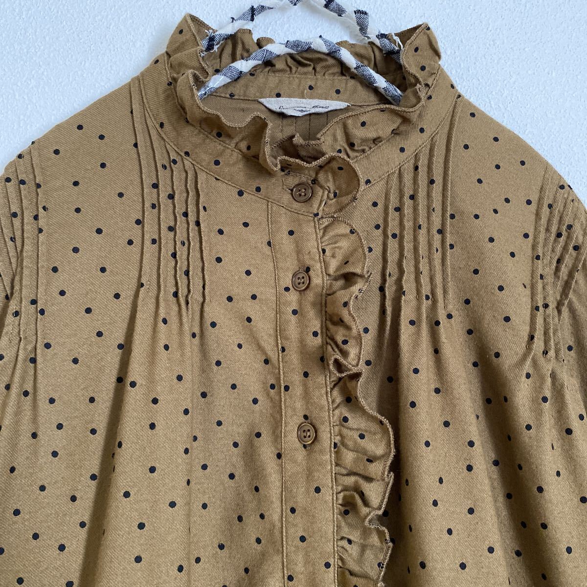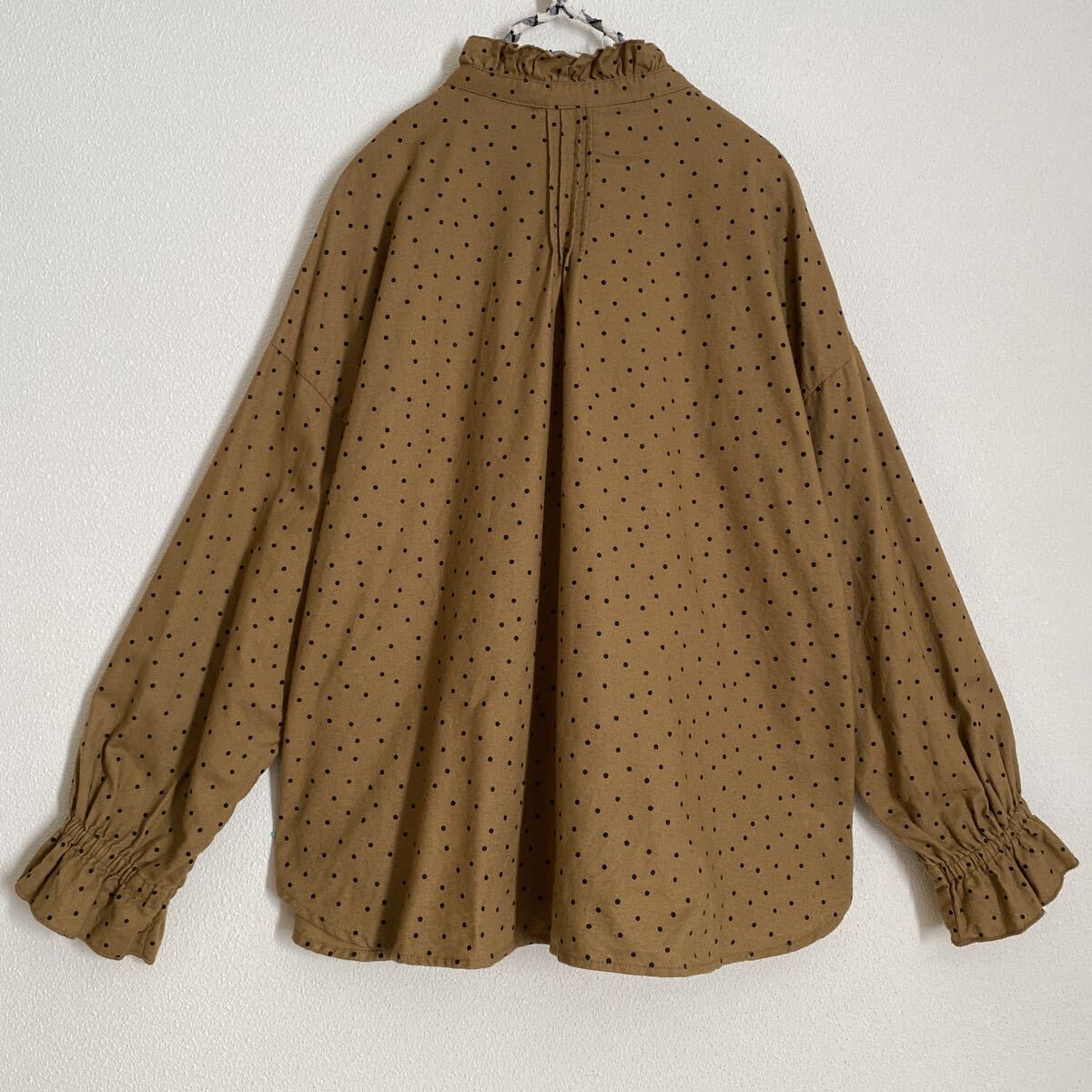 【サマンサモスモス SM2】ドット柄襟フリルブラウス ブラウン ブロンズ