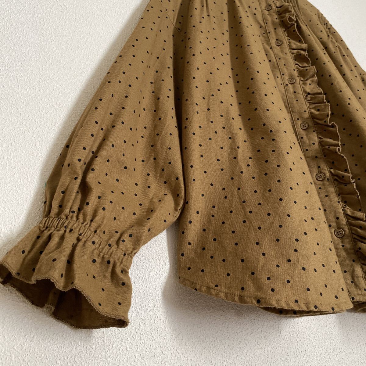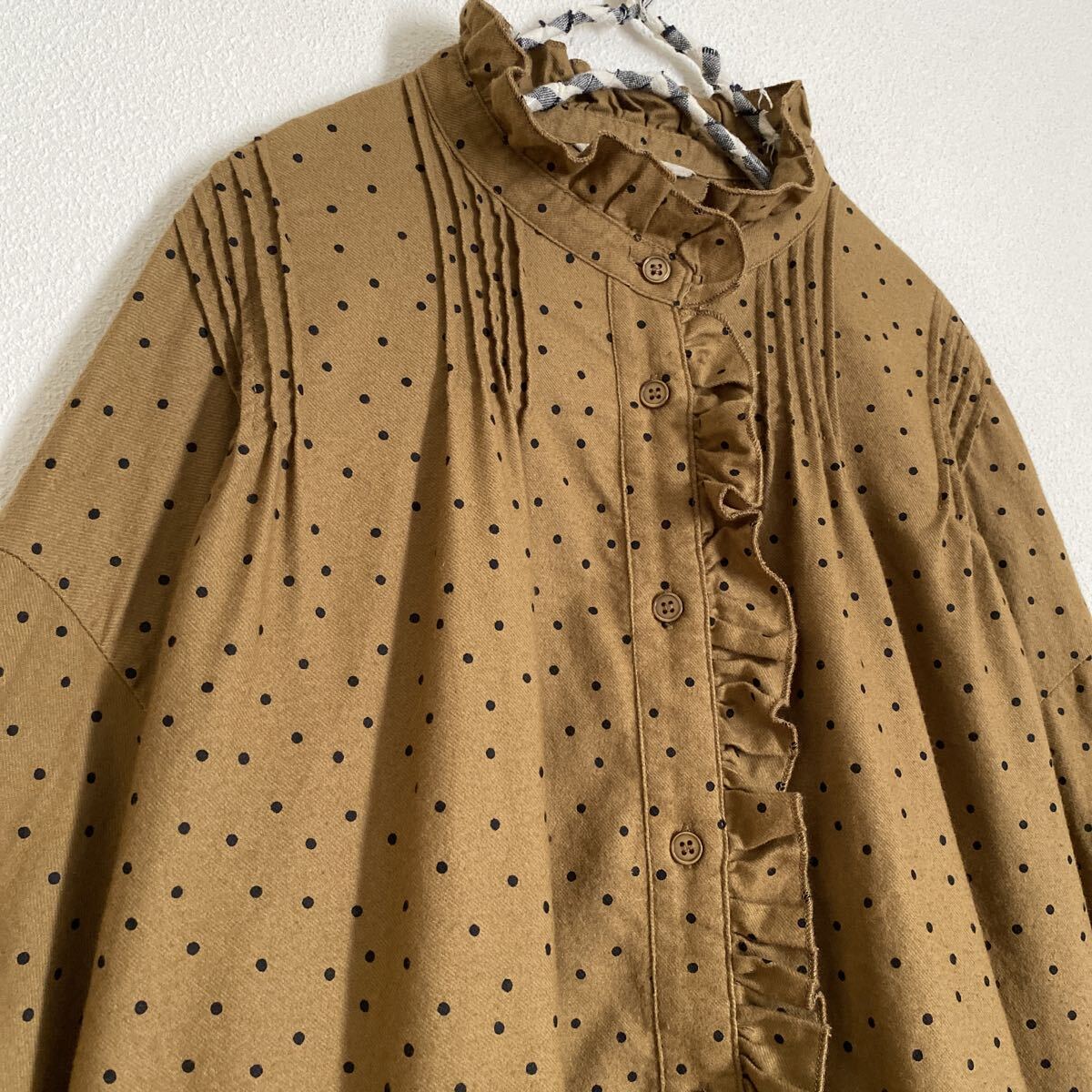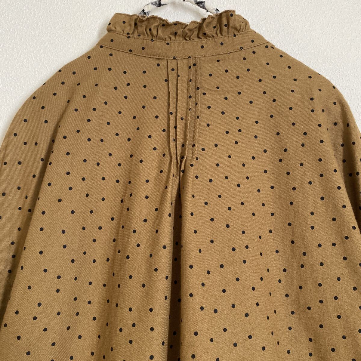 【サマンサモスモス SM2】ドット柄襟フリルブラウス ブラウン ブロンズ