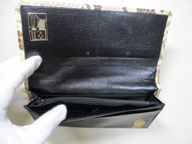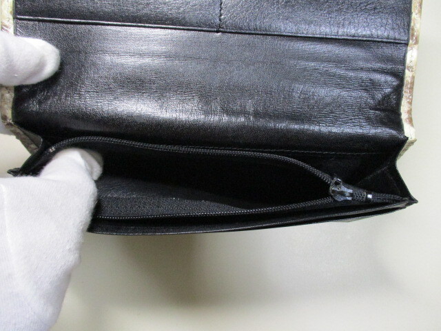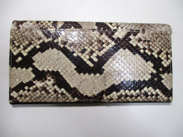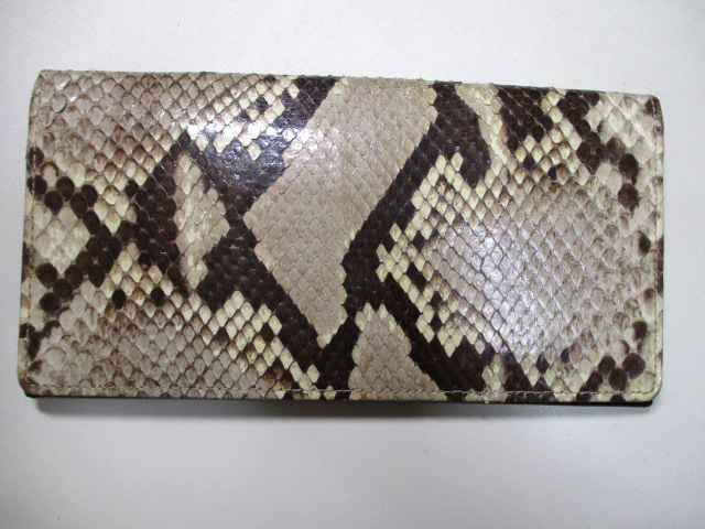 パイソン ヘビ革のかぶせ長財布。
