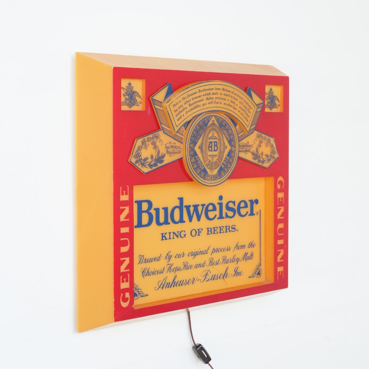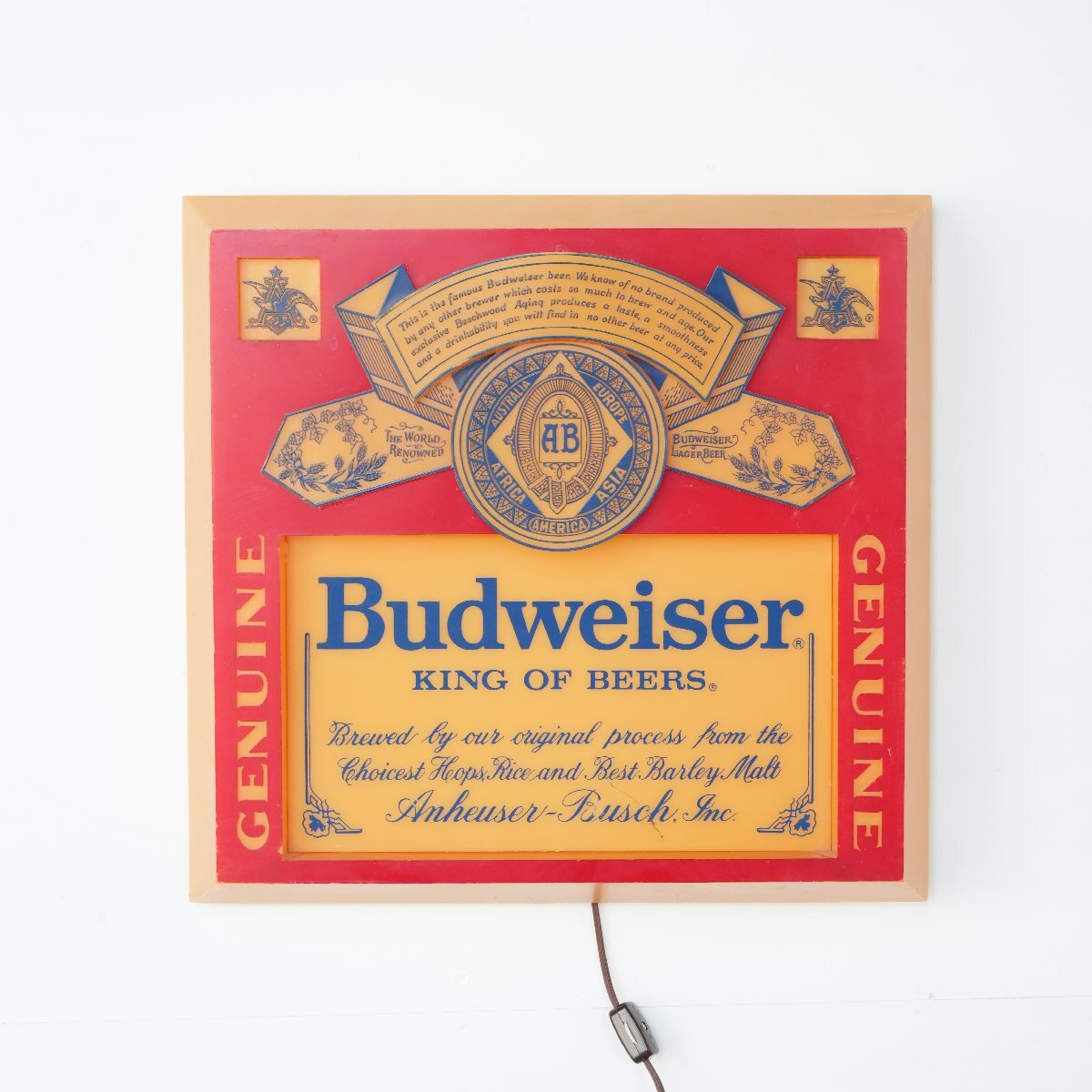 商品説明 explanation | 推定1980年代頃の日本でも人気の高い「Budweiser」のヴィンテージ ライトサインです。 バーやショップで販売促進に使用されていたものです。 雰囲気が良く、ディスプレイするだけでアメリカンな空間を演出してくれます。 ご自宅やお店のディスプレイにいかがでしょうか。 |