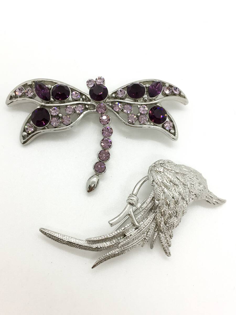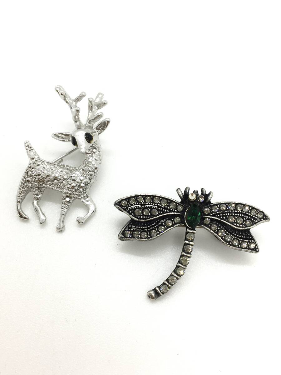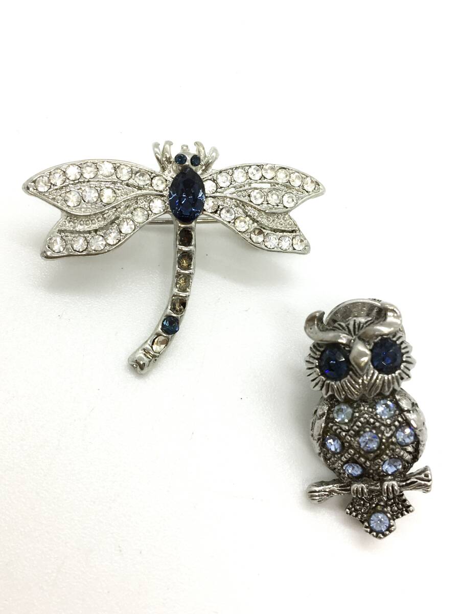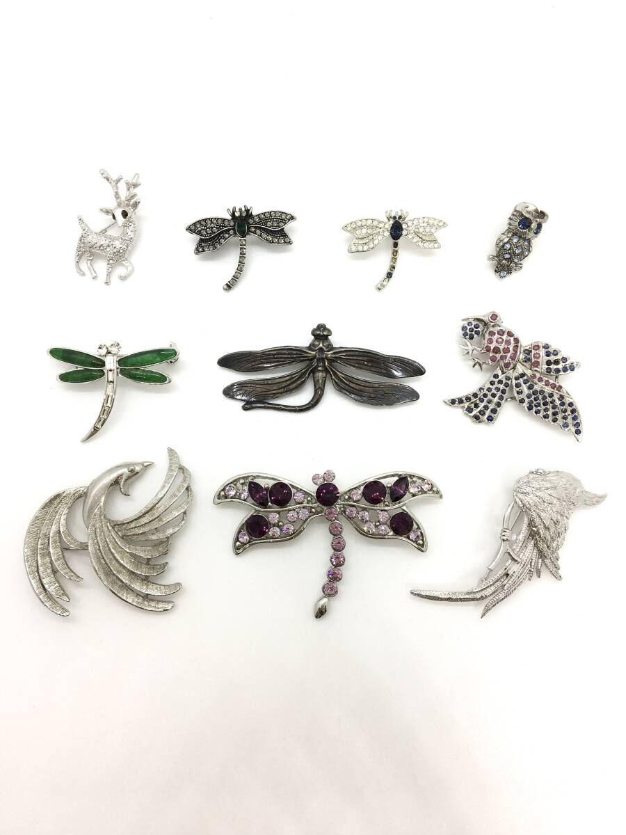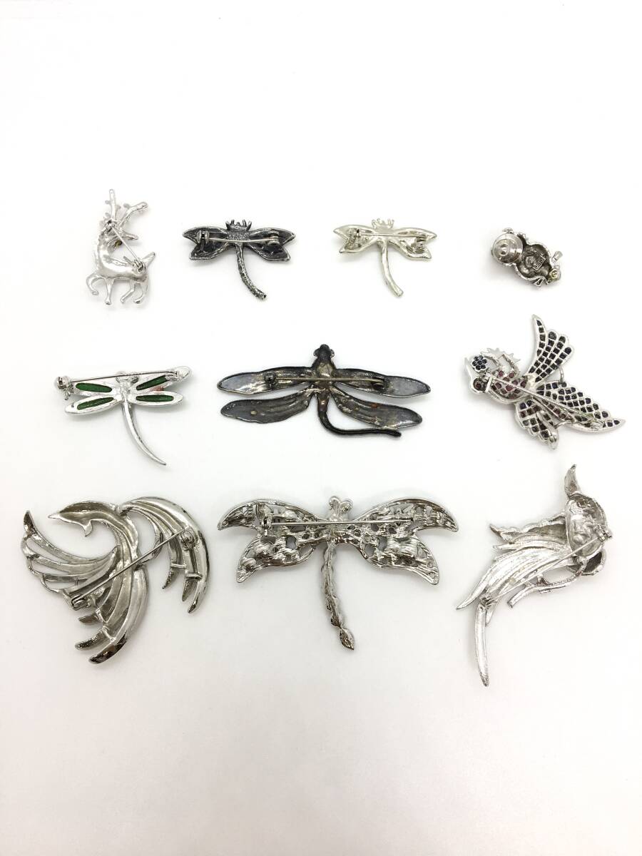 ◇1円◇ ブローチ まとめ10点セット シルバー 鳥 トンボ フクロウ トナカイ ストーン レディース アクセサリー 冠婚葬祭 石取れ
