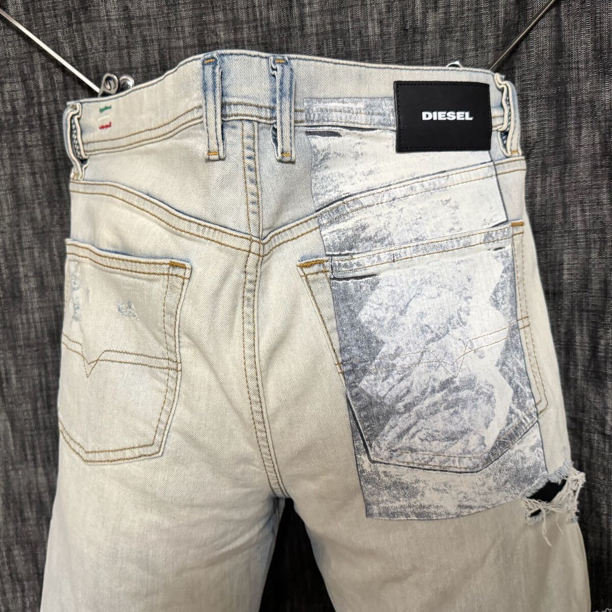 90’SテイストのレギュラーストレートにインスパイアーされたモデルDAGH。クラッシックなストレートスタイルなので様々なテイストの洋服にもマッチします。DIESELの5pocketには珍しいインパクトのあるグラフィックにダメージ加工、春夏シーズンらしいライトなウォッシュが特徴的。