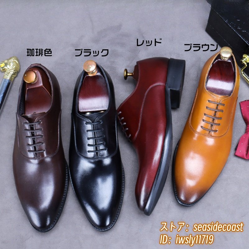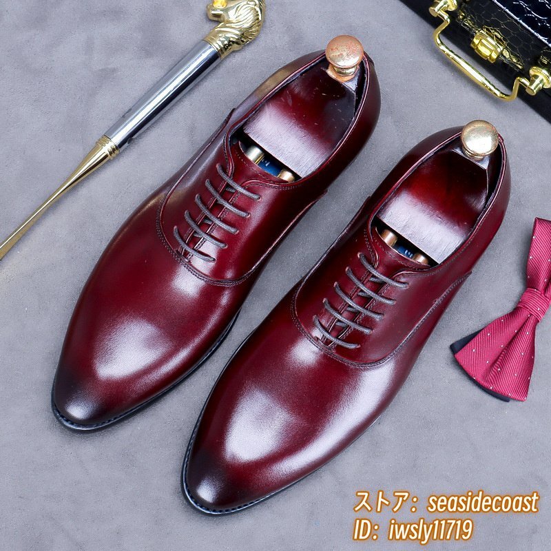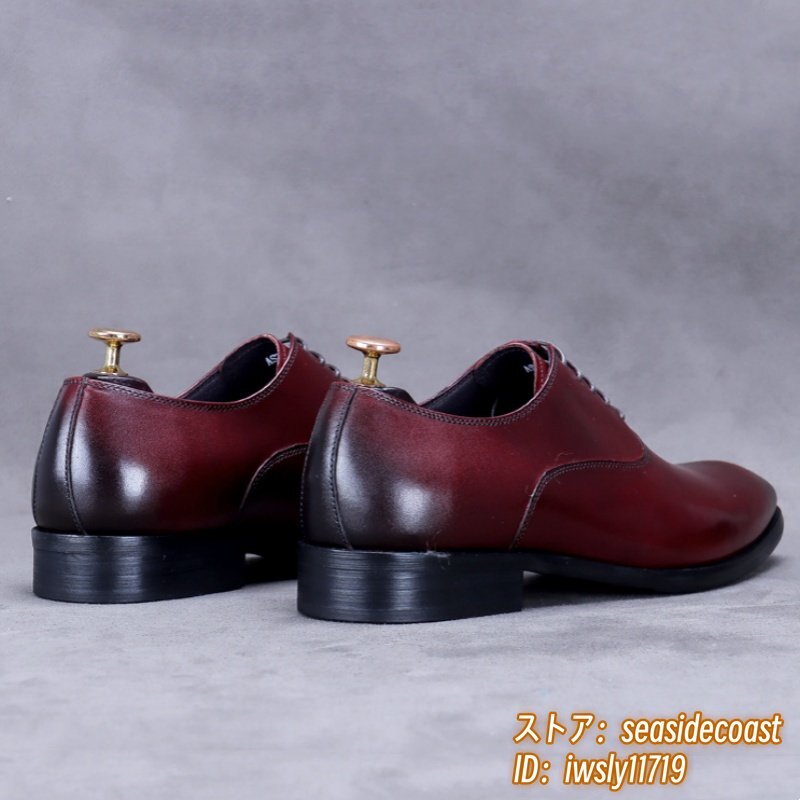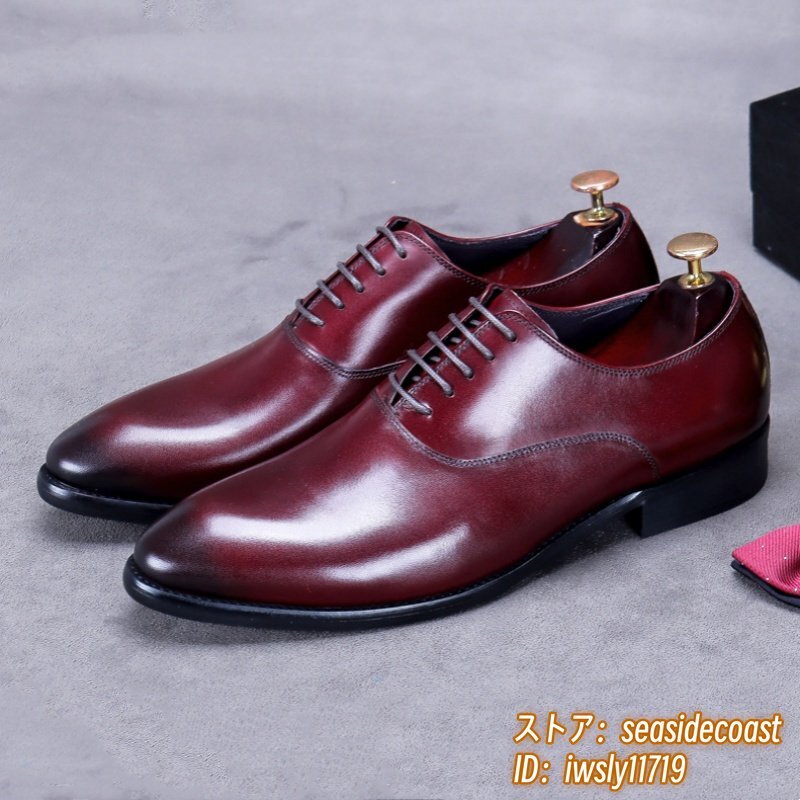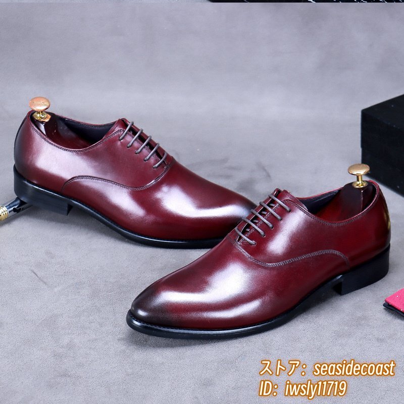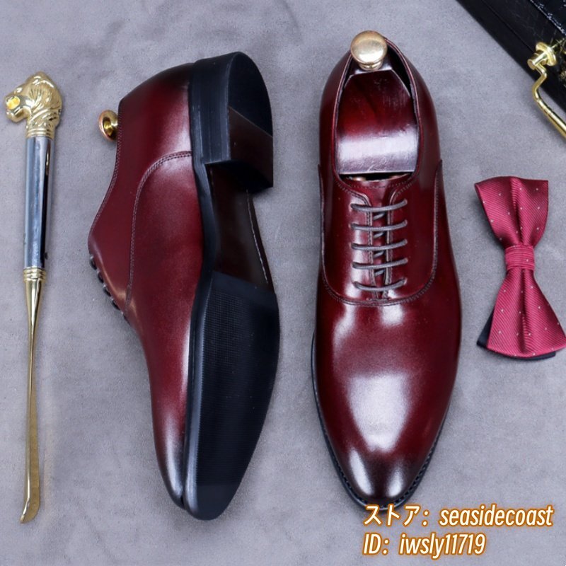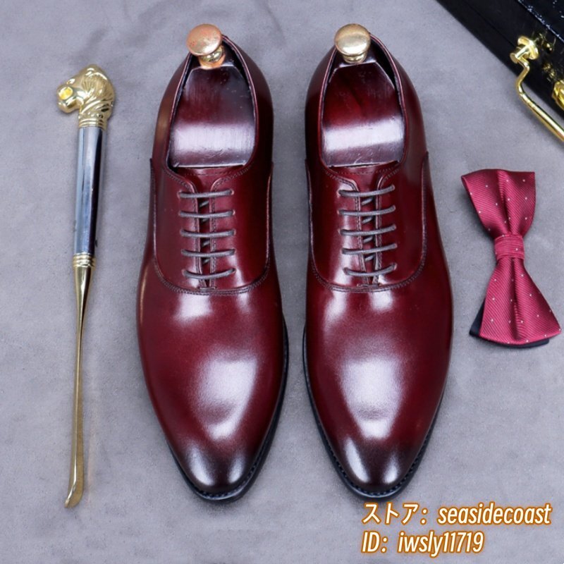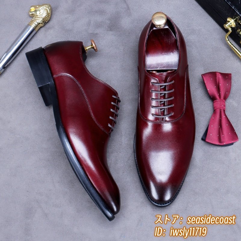 超希少★定価10万超 本革 レザーシューズ メンズ 新品 ビジネスシューズ 職人手作り 高級牛革 紳士靴 革靴 フォーマル宴会 レッド 27.5cm