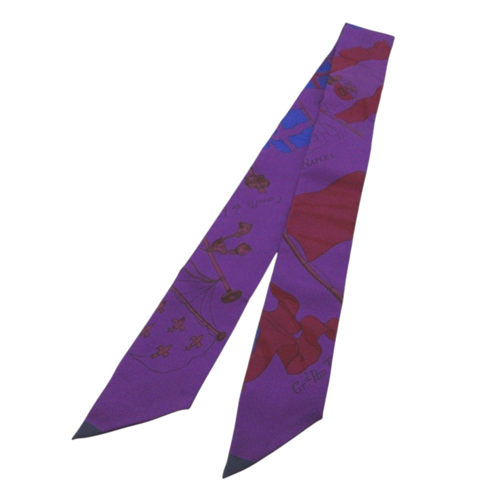 新品同様 エルメス ツイリー フラッグ 旗 スカーフ シルク パープル/ブルー 0168 HERMES