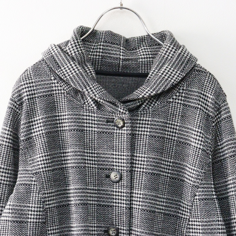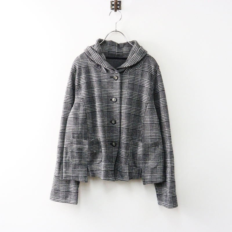 美品 2024AW センソユニコ ティービー Sensounico t.b グレンチェックラウンドカラージャケット 40\ブラック ウール【2400014616163】