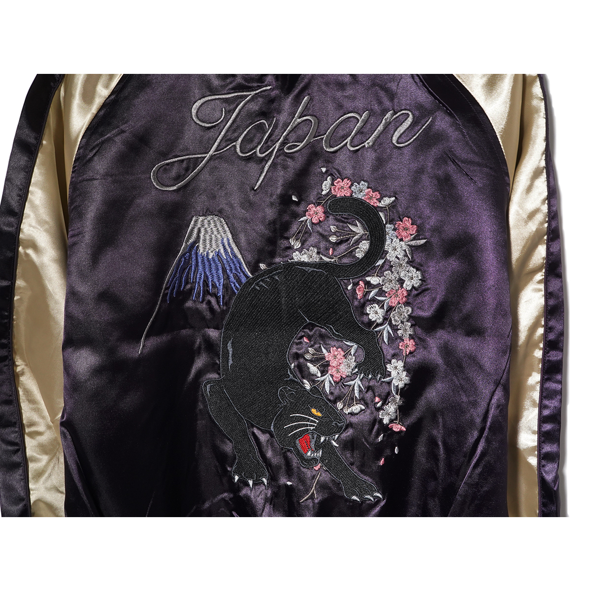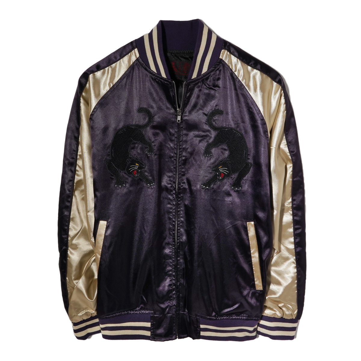 さらりと羽織れるストリート定番スカジャン。 程よい厚さとサラッとした高級感のあるサテン生地、 フロントとバックに施された丁寧な刺繍使いがポイントで、アメカジでは定番のスカジャンを現代っぽくタイトなサイズ感に。 ボディはカラー配色切り替えで仕上げた大人っぽさのあるデザインなど凝ったディティール。 これからの時期に最適、ライトアウターとして活躍してくれる1着。 左胸内側裏ポケットあり、中綿ナシ。 【カラー◆Color】 黒豹 / PURPLE 【サイズ◆Size】 L 【寸法◆Size】 S size : 身幅51cm 肩幅(ラグランにより数値なし) 着丈59cm 裄丈80cm M size : 身幅53cm 肩幅(ラグランにより数値なし) 着丈61cm 裄丈82cm L size : 身幅55cm 肩幅(ラグランにより数値なし) 着丈63cm 裄丈84cm XL size : 身幅57cm 肩幅(ラグランにより数値なし) 着丈65cm 裄丈86cm 【素材◆Material】 ポリエステル 100% ※現物に近いカラーに撮影しておりますがモニターカラー設定、または印象によりカラー誤差があることをご理解よろしくお願い致します。 | ||