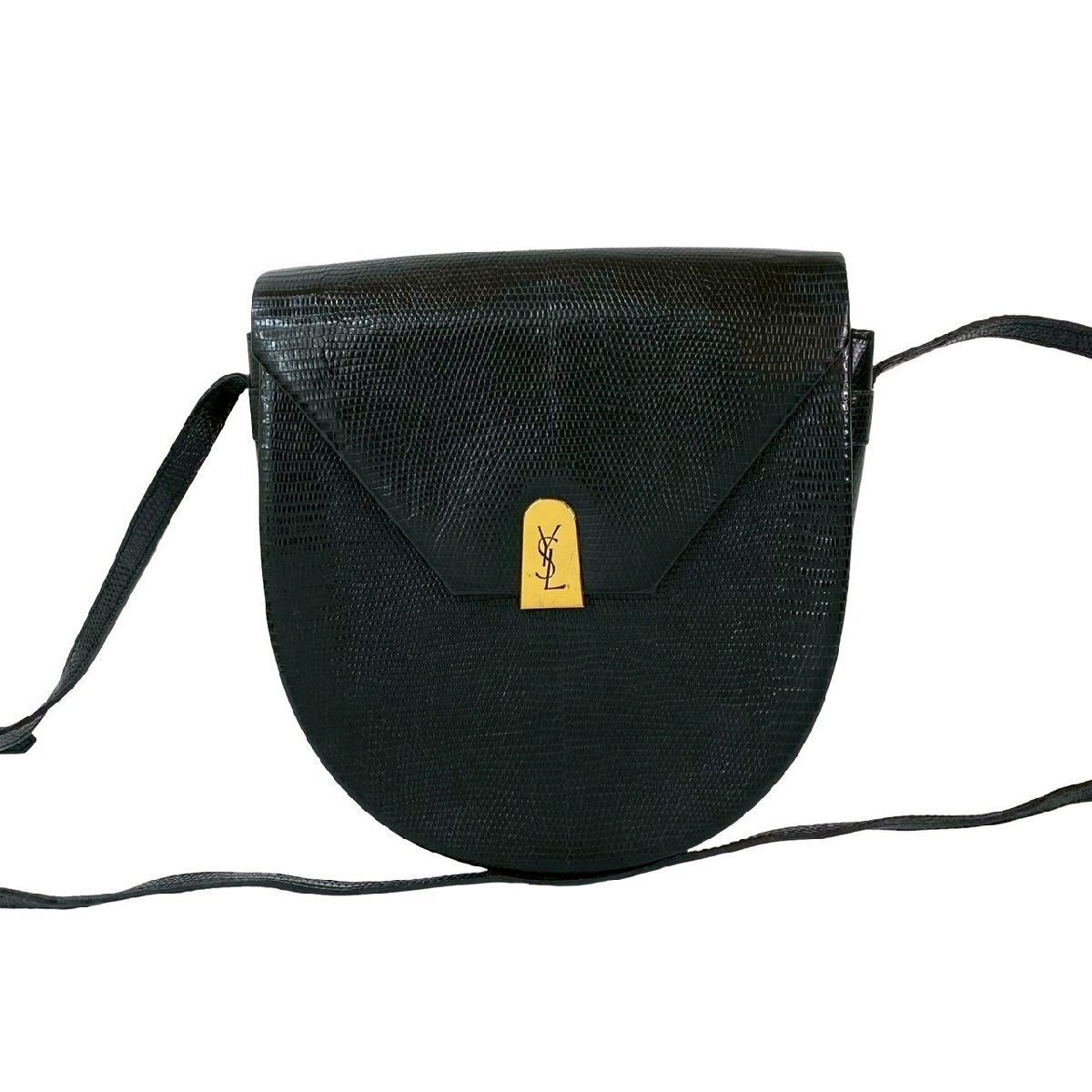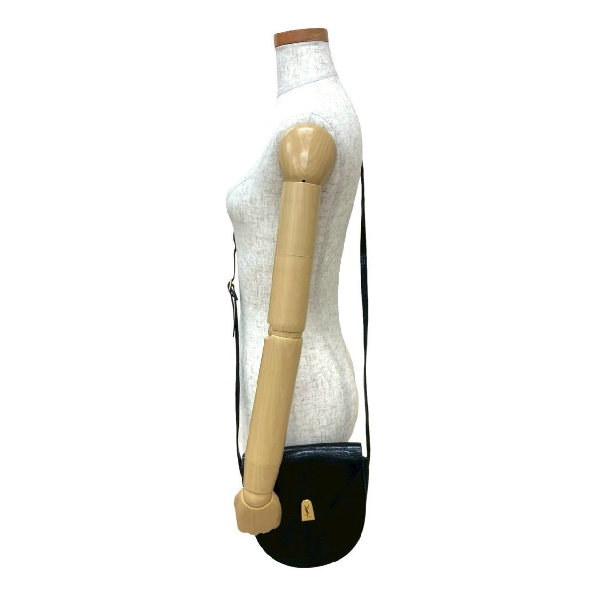 極 美品 YVES SAINT LAURENT イヴ サンローラン YSL ロゴ 金具 レザー 本革 ショルダーバッグ ポシェット サコッシュ ブラック 65551