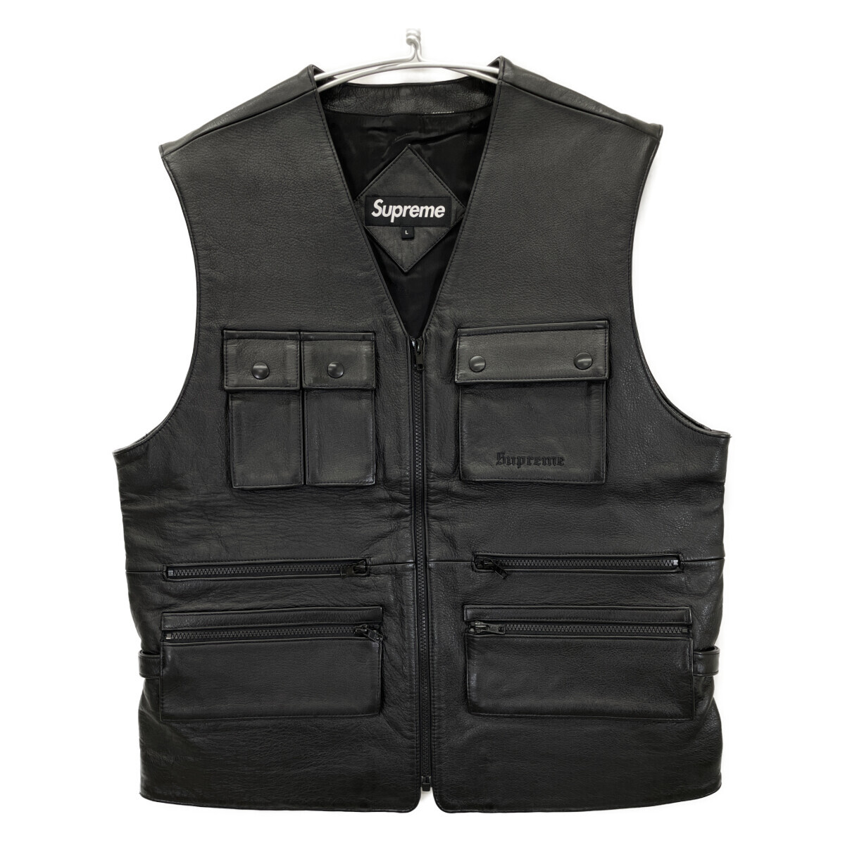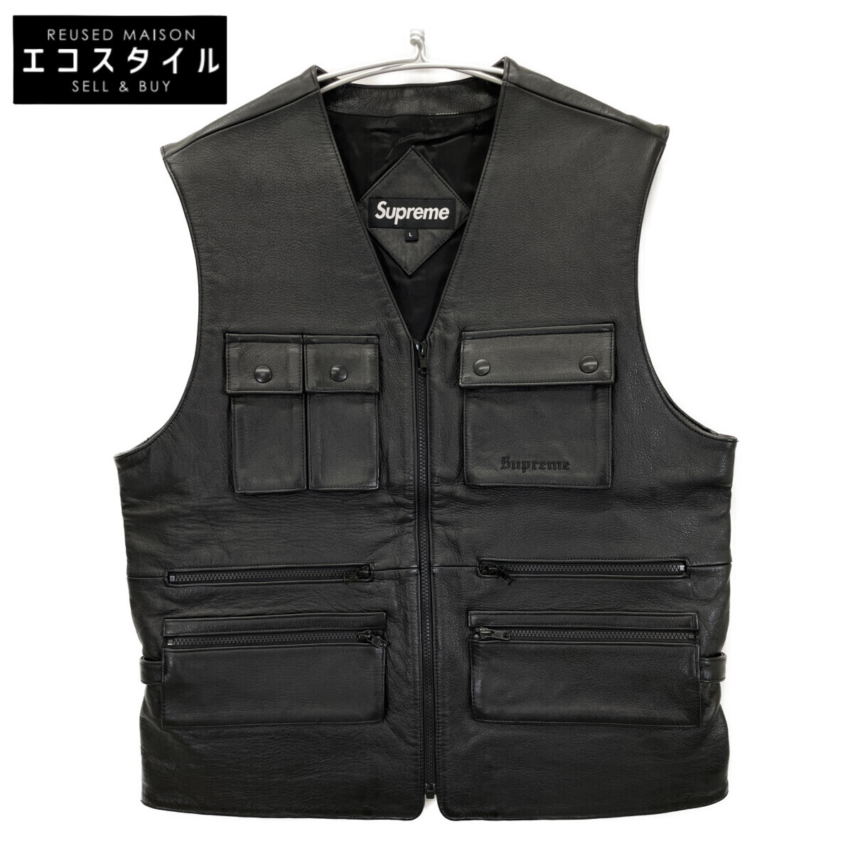 Supreme シュプリーム ブラック 18AW レザーベスト ブラック L ベスト レザー メンズ 中古