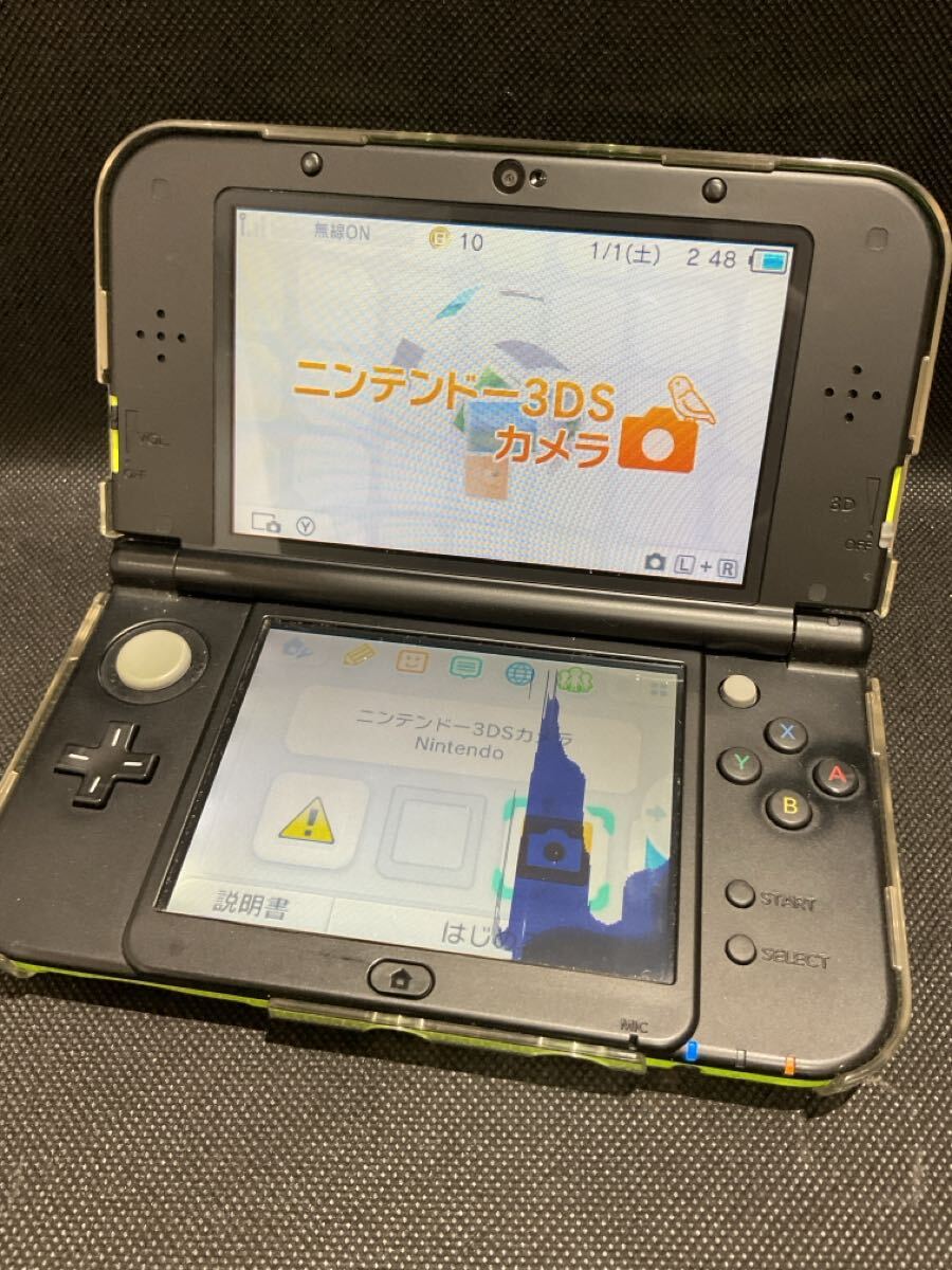 【P-3037】 Nintendo 3DS LL ニンテンドー RED-001 液晶不良有り グリーン 保護ケース付き 3DSLL
