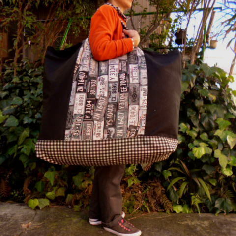 ナンバープレート手作り特大お昼寝布団用バッグ