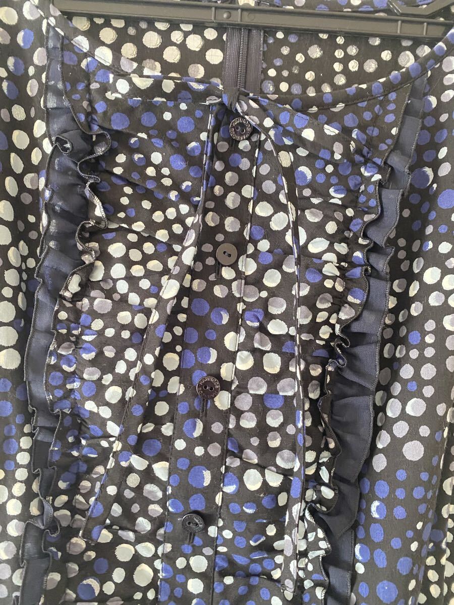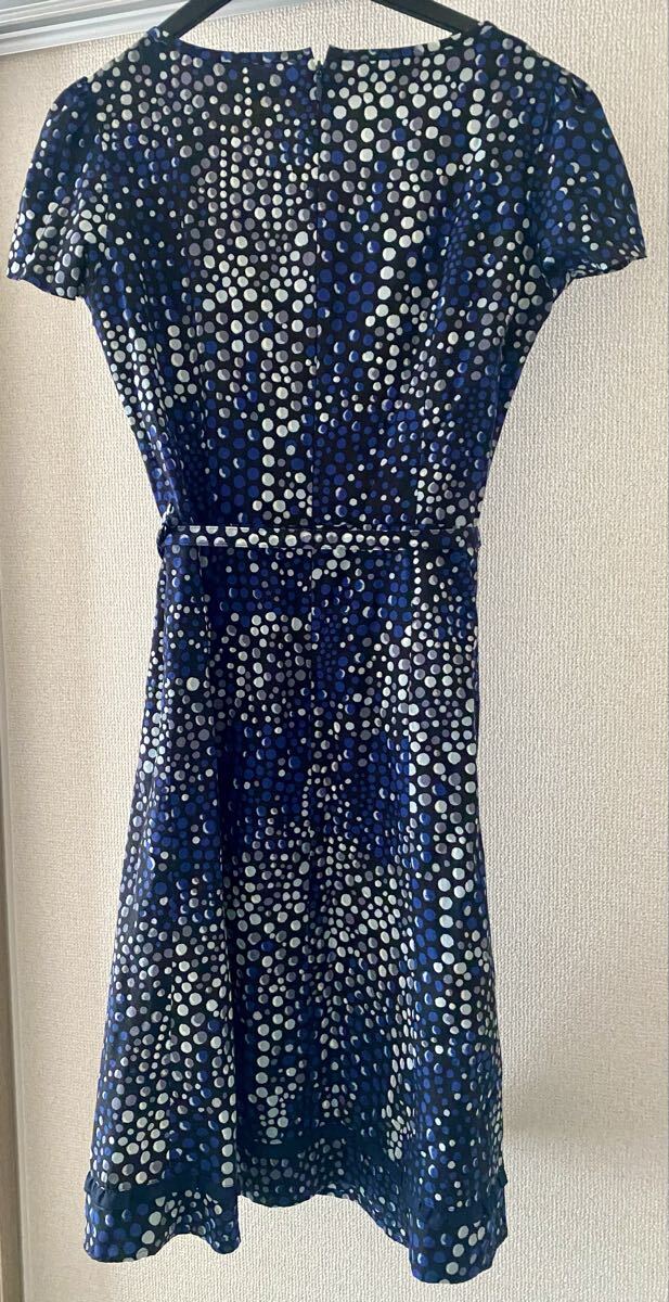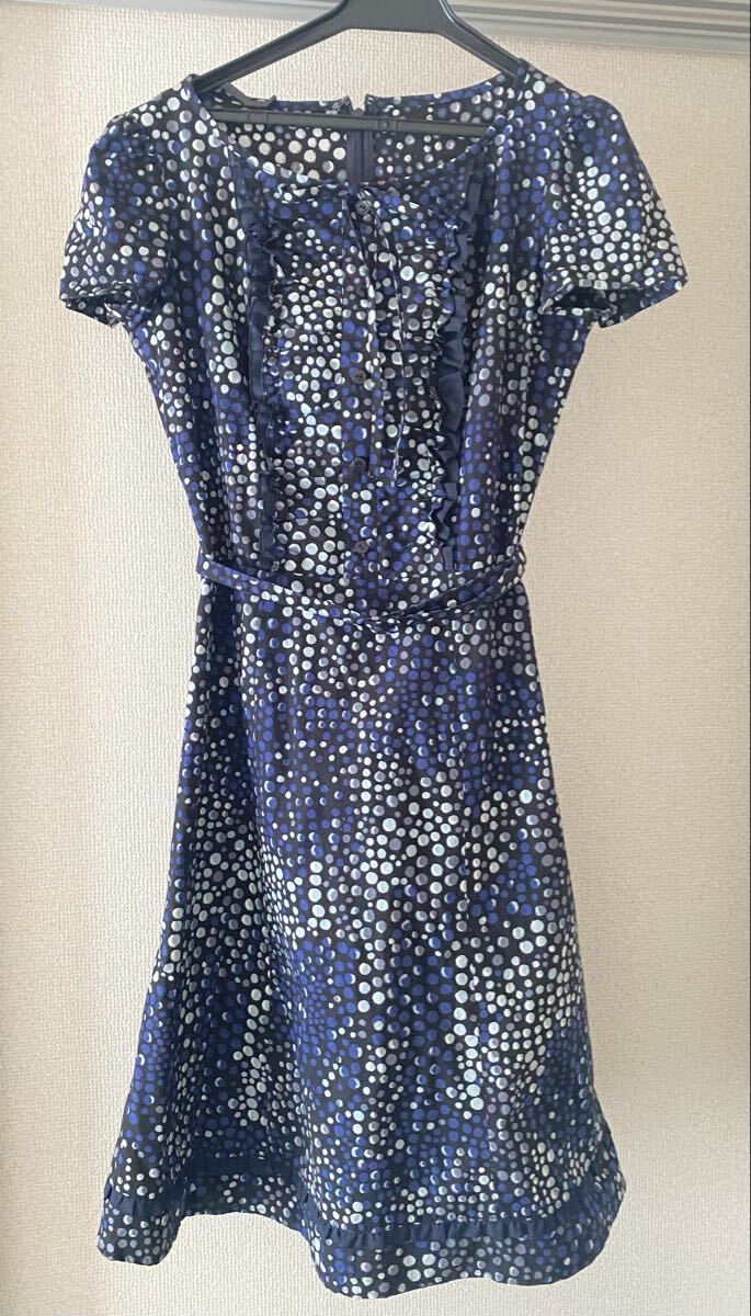 ご覧いただき、ありがとうございます。 Harrodsのネイビーとホワイトのドット柄、フリル付きのひざ丈ワンピース。 上品で形の綺麗なワンピースになります。 色: ネイビーとホワイトのドット柄 スタイル: ひざ丈ワンピース 袖: 半袖 ウエスト: ベルト付き