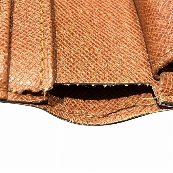 【ブランド】ルイヴィトン 【ライン】モノグラム 【商品名】ポルトフォイユ ヴィエノワ 【型番】M61674 【シリアル】CA1015 【カラー】ブラウン 【素材】トアル地 【仕様】お札入れ×1、小銭入れ×1 カード入れ×4、ポケット×2 【サイズ】H約9cm×W約13.5cm×D約3cm 【付属品】なし 【ランク】C (使用感かなりあり) 【状態】 外側の状態:擦れ、ほつれ、使用感、中程度有り 内側の状態:擦れ、傷、汚れ、カードポケット使用感、破れ、剥がれ、中程度有り 金具の状態:擦れ、傷、ホック不具合、開閉不具合、金具取れ、大程度有り 小銭入れの中の状態:擦れ、汚れ、使用感、中程度有り その他コメント:ボタンフックの金具が一箇所ズレている為、閉まりません。 | |
