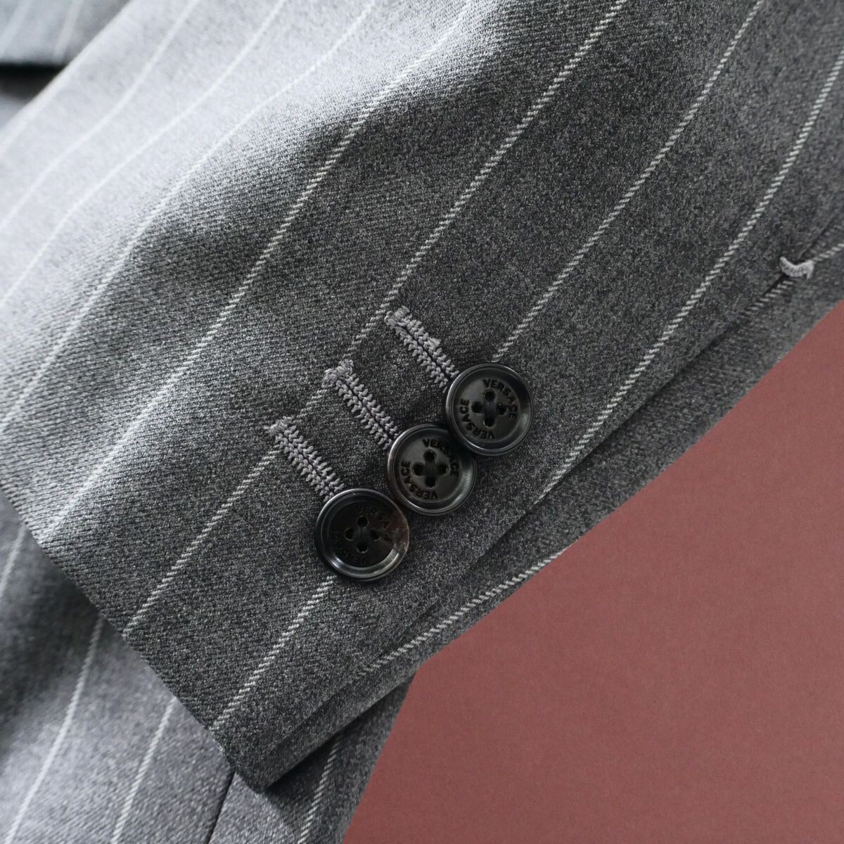 ●イタリアを代表するラグジュアリーブランド「VERSACE(ヴェルサーチェ)」より、極上の仕立てが光るダブルブレストジャケットのご紹介でございます。ブランドのヘリテージラインとして展開される「TAILOR MADE」シリーズの逸品で、モードとクラシックを融合させたデザインが際立ちます。 ●シャープな印象を与えるピークドラペルと、程よくワイドなラペル幅がエレガントな印象を強調。全体に施されたグレー地のピンストライプが、洗練された都会的な雰囲気を演出します。エグゼクティブの方のビジネススタイルはもちろん、カジュアルダウンしたコーディネートにも映える、着回し力の高い一着となっております。 ●ディテール面では、袖口にはブランドロゴ入りのボタンを配した本切羽仕様となっており、実用性と高級感を兼ね備えたディテールが魅力です。前面にはフラップ付きポケットを2つ装備、内ポケットも備え付けられており、機能性にも優れております。 ●背面にはクラシックなセンターベントを採用し、動きやすさと通気性を確保。裏地には滑らかなキュプラ素材を使用し、袖通しの良さと快適な着用感を実現。背抜き仕立てで、ロングシーズンにわたりご愛用いただける仕様となっております。 ●VERSACEならではの洗練されたシルエットと、イタリアメイドの丁寧な縫製技術が融合した珠玉のジャケットは、ビジネスからフォーマルまで幅広く対応。スペアボタンも付属しておりますので、長くご愛用いただける安心感も魅力です。 ●以前までのジャンニ・ヴェルサーチは現在「ヴェルサーチェ」となり、2ndラインのヴェルサスは「ヴェルサス・ヴェルサーチェ」と名称が変わっております。イタリア語で'CE'は「チェ」で、'CI'が「チ」、'CHI'が「キ」の発音となりますので、本来の母国語発音が、日本においてのブランド名となりました。 ●表内ポケットあり。裏生地付き。センターベントタイプ。スペアボタン付属。肩パット仕上げ。 ●イタリア製 ●定価:387,200円 ●色:メランジグレー系 ●素材:ウール100% 裏生地:キュプラ100% ●サイズ:52 54の中から、お選びいただけます。*ご落札後、取引連絡よりご希望のサイズをお申し付け下さい(後の変更・交換・キャンセルは一切して頂けません)。ご落札後、24時間以内のご連絡の程お願い申し上げます。*下記詳細サイズもご確認の上、よろしくお願いいたします。 ●詳細サイズ(cm)置いた状態で: 52 *日本サイズ概ねXLサイズ辺りとなりますが、下記詳細サイズもご確認の上、よろしくお願いいたします。 肩幅:51.5(右肩端~左肩端の直線距離) 身幅:55(右脇下~左脇下の直線距離) 袖丈:67(肩の縫い目~袖先) 着丈:79(襟の付け根~裾まで。襟の幅を含んでいません) 54 *日本サイズ概ねXXLサイズ辺りとなりますが、下記詳細サイズもご確認の上、よろしくお願いいたします。 肩幅:52.5(右肩端~左肩端の直線距離) 身幅:57(右脇下~左脇下の直線距離) 袖丈:68(肩の縫い目~袖先) 着丈:80(襟の付け根~裾まで。襟の幅を含んでいません) 詳細サイズご参考 ※大よその採寸となります。 ※お品物はタイトルにございますもののみとなり、着合わせのお洋服や小物などがございましても、それらは含まれません。 ※素材の特性上、多少のことはご容赦くださいませ。 ※ご質問は、必ずご入札前にお願いいたします。(ご入札後、ご落札後の取引ナビからのご質問はお避け下さい) ☆☆☆ご連絡・お支払い(Yahooかんたん決済)☆☆☆ ご落札後24時間以内に、取引ナビからご連絡(お名前・ご住所全て。*サイズ選択いただけるオークションはサイズのご連絡も含め)・Yahooかんたん決済可能な方。 *銀行振込の場合は翌営業日、コンビニ決済はご落札後2日目の午前中まで、お支払いをお済ませ下さいませ。 電話応対は、一切致しておりません。取引ナビをご利用下さい。 ☆☆☆受け取り連絡☆☆☆ 製品到着後24時間以内。*出来る限り、到着日当日に受け取り連絡頂きましたら幸いです。 *配達日指定ご希望の際は、ご落札後、最長4日以内に「受取連絡」ができるようお願いします。(北海道・沖縄・離島の方は5日以内) *特別に記載をしました際には、そちらを優先させていただきます。 ☆☆☆同日に2点以上のご落札の場合☆☆☆ 「まとめて取引」を、最初にご選択ください。 *「まとめて取引」を、お届け情報などご入力前にご選択ください。同梱発送となり、一品分の送料のみとなります。 *「まとめて取引」をご選択されなかった場合、出品者側では送料訂正できませんので、予めご了承くださいませ。 新規IDの方は、こちらを必ずご覧くださいませ ☆☆☆ご入札及びご落札のキャンセルはしていただけません☆☆☆ ![]() 【お支払い】 合計金額 = ご落札価格 + 送料 ◆Yahooかんたん決済(ご落札後24時間以内に支払い手続きを完了ください。) *2点以上同日ご落札の場合は、『まとめて取引』をお選びください。 *領収書がご必要の際:ご落札後Eメールアドレスを、取引メッセージにてお知らせ下さい。電子