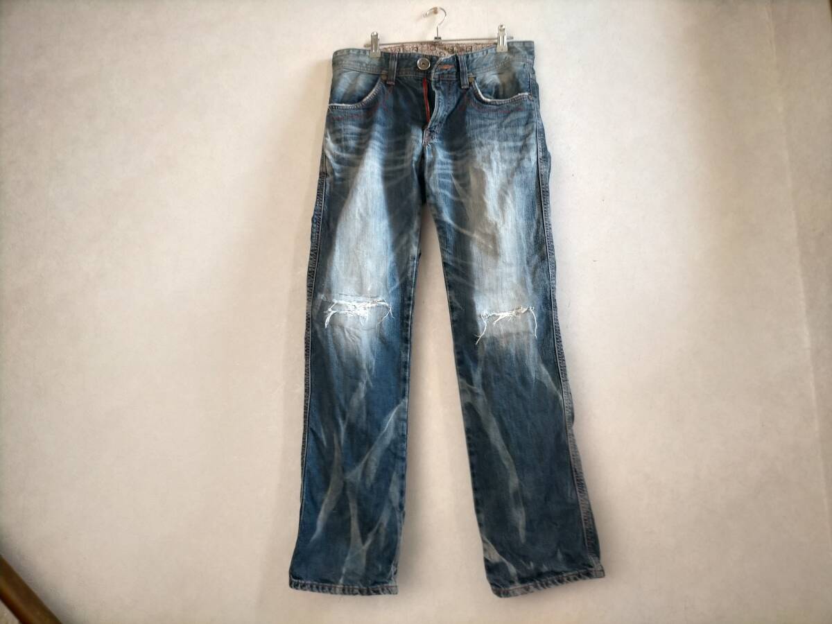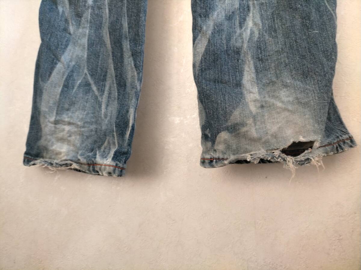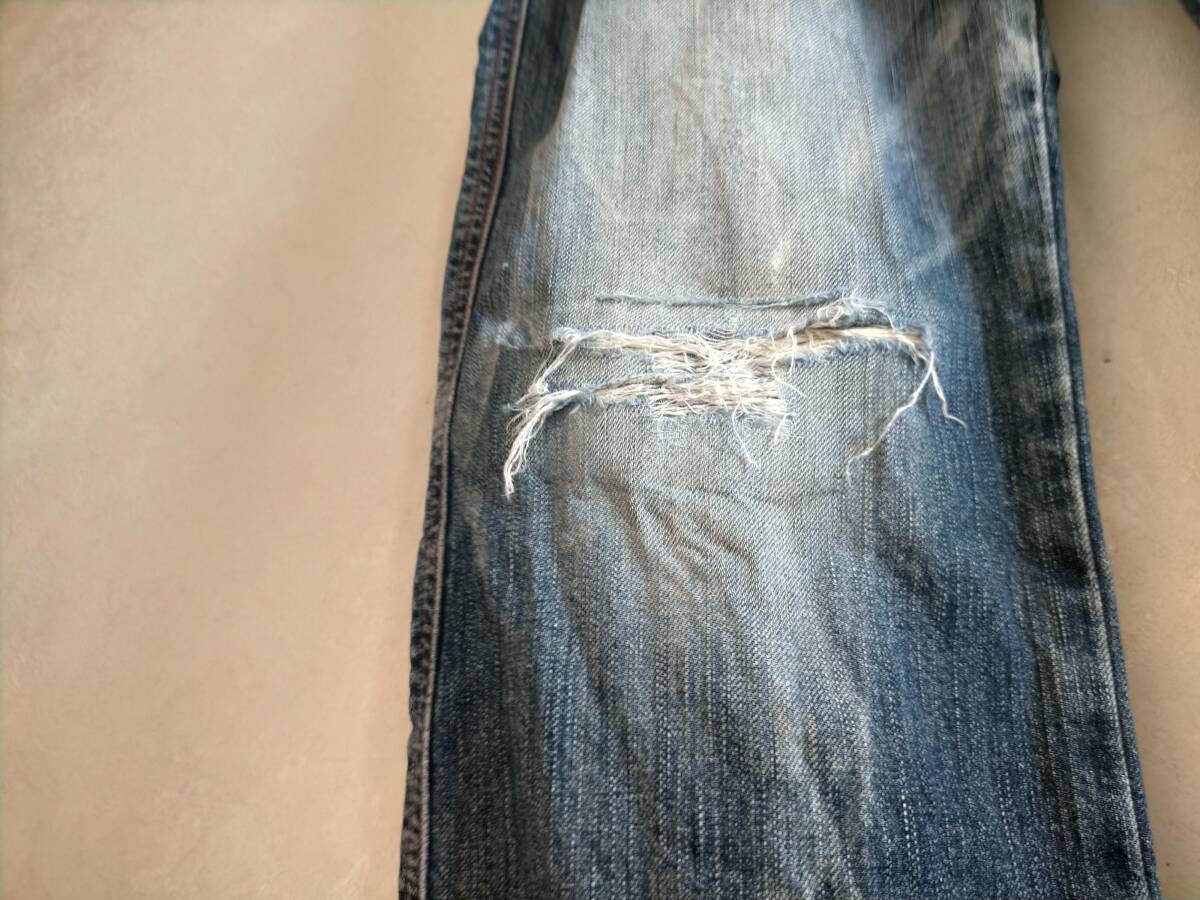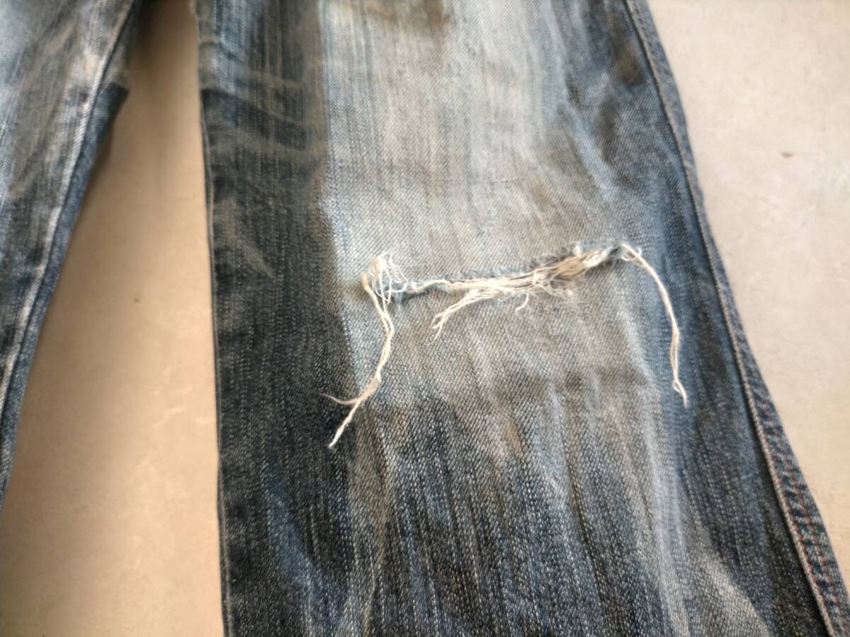 最近はカーゴパンツばかり履いていまして、ジーンズを着る機会がなくなってしまいすべて古着屋さんに持っていこうと思いましたが、このジーンズは破れているという理由で廃棄されそうなのでヤフオクに出品しております。