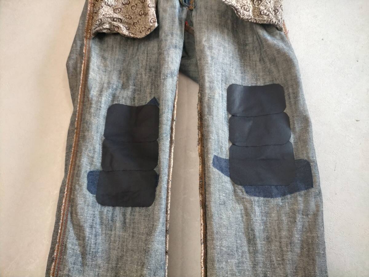 膝あたりがけっこう破れてしまっていたので、裏側からあてものして塞いで履いていました。