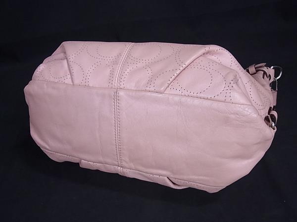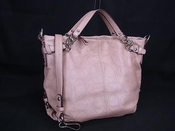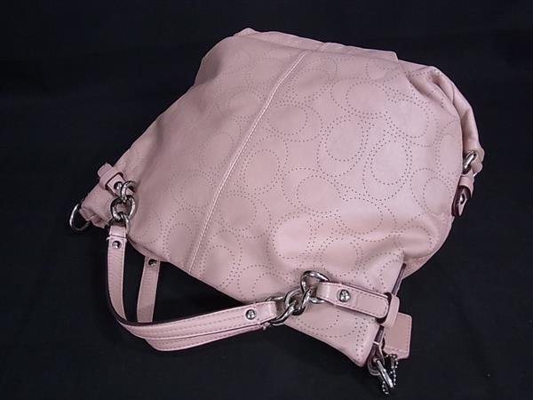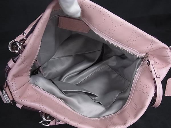 1円 ■美品■ COACH コーチ F16908 シグネチャー パーフォレイテッド レザー パンチング 2WAY ハンドバッグ ショルダー ピンク系 FV0401