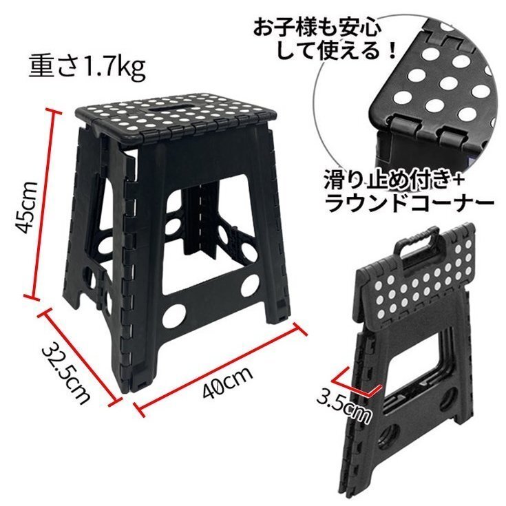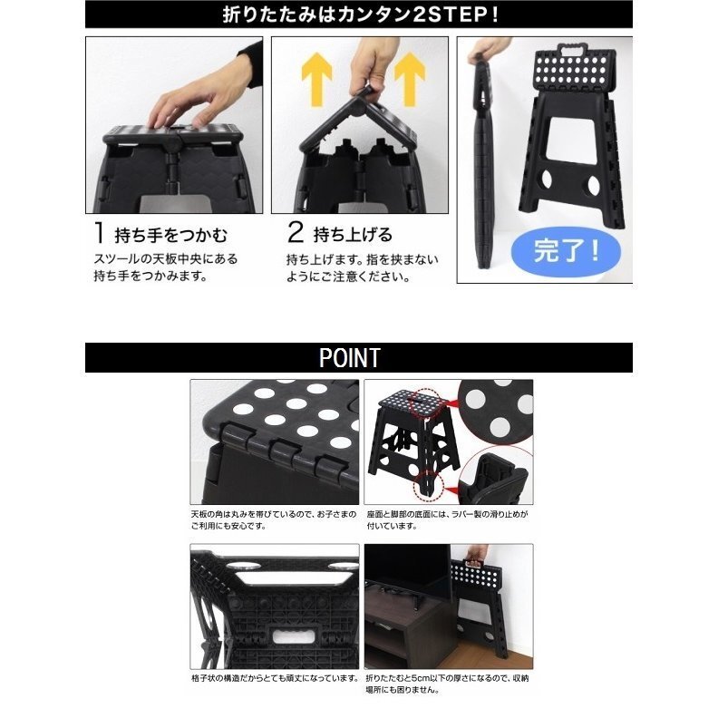 踏み台 折りたたみ スツール 【ブラック】 45cm 脚立 いす イス 椅子 チェア ステップ台 コンパクト 子ども 軽量 LB-189 | |||||||||||