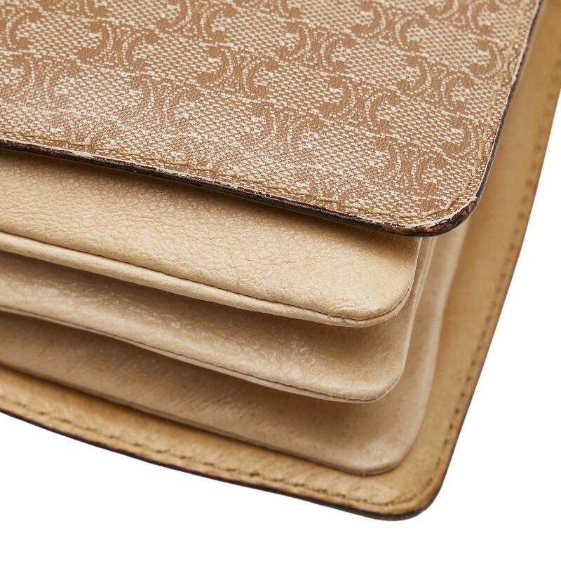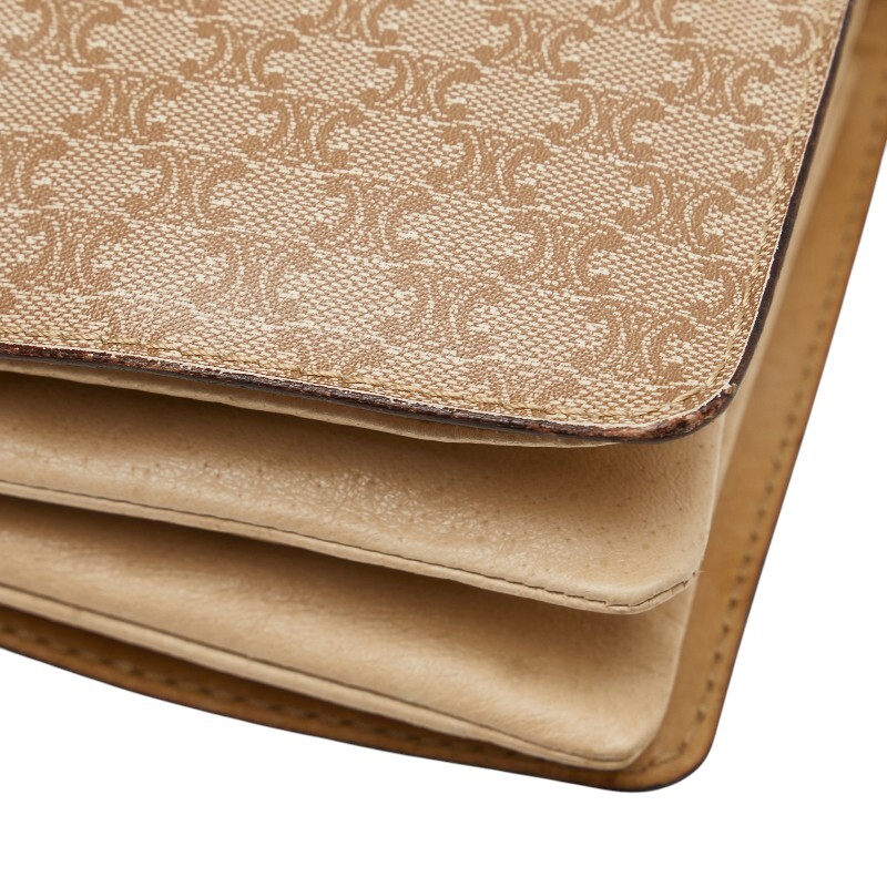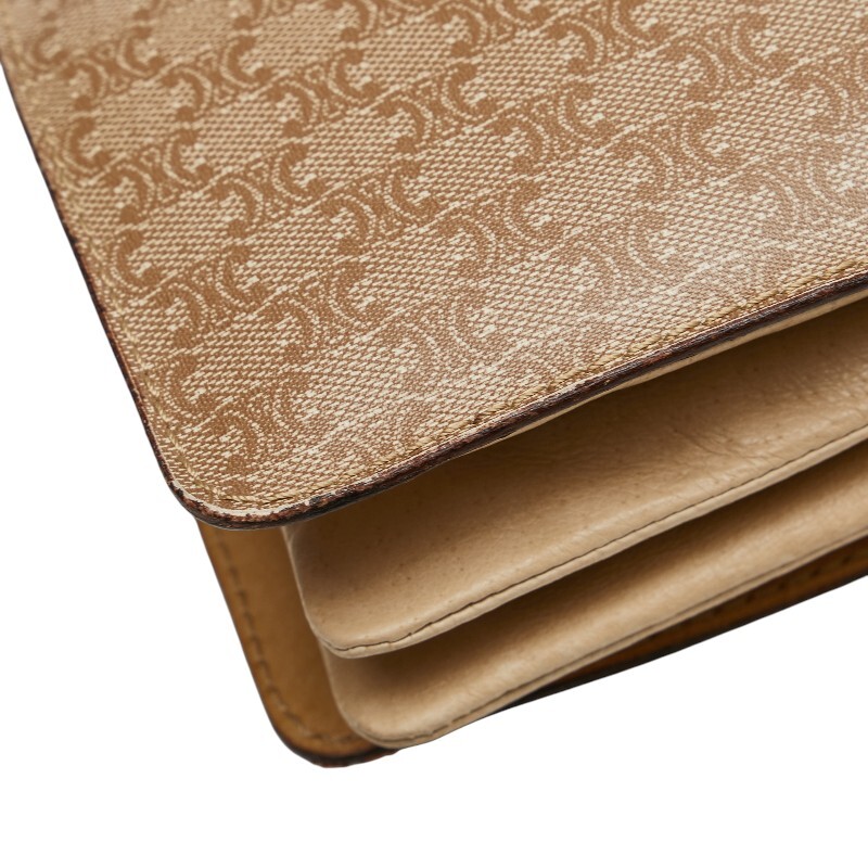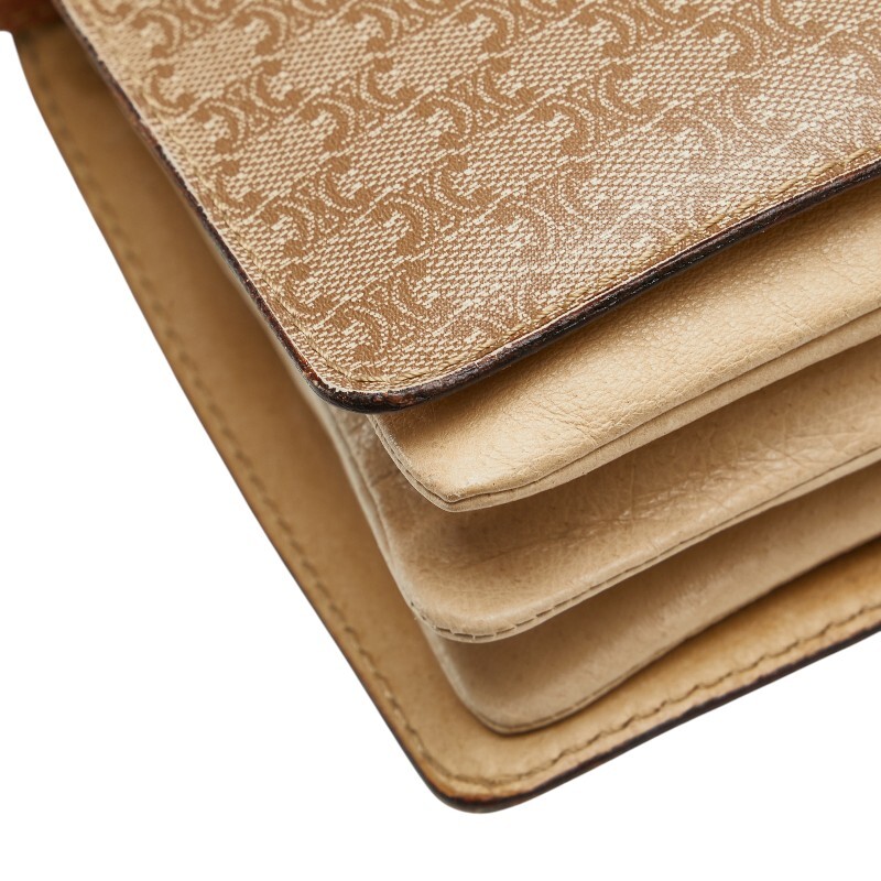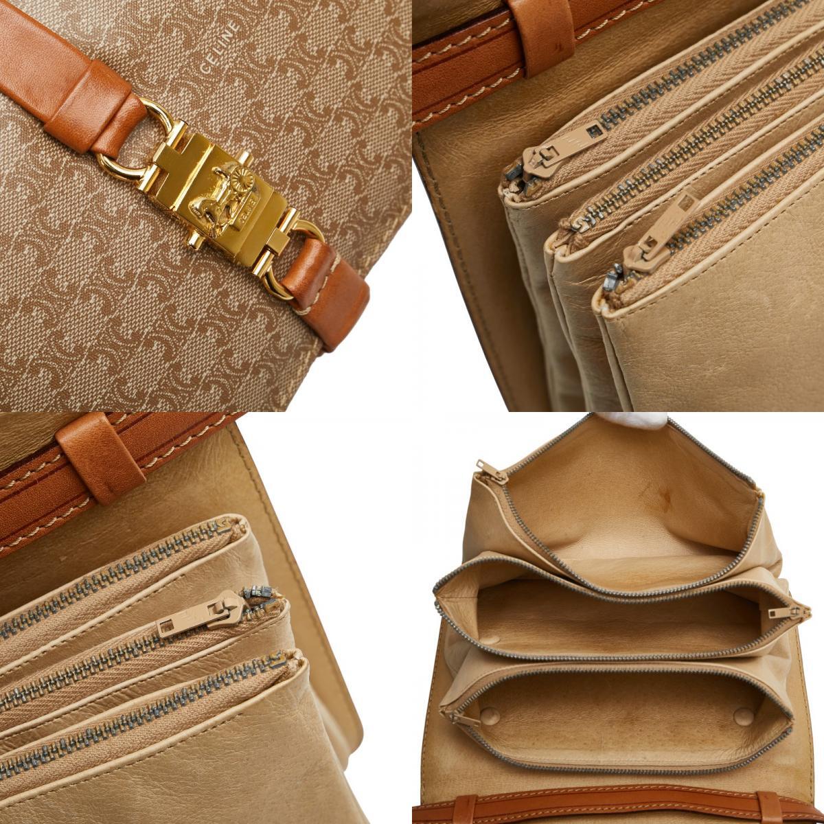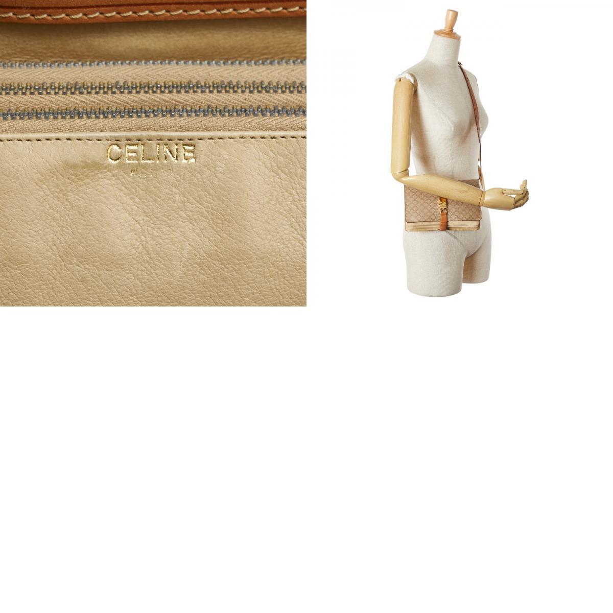 セリーヌ マカダム ショルダーバッグ ベージュ ブラウン PVC レザー レディース CELINE 【中古】