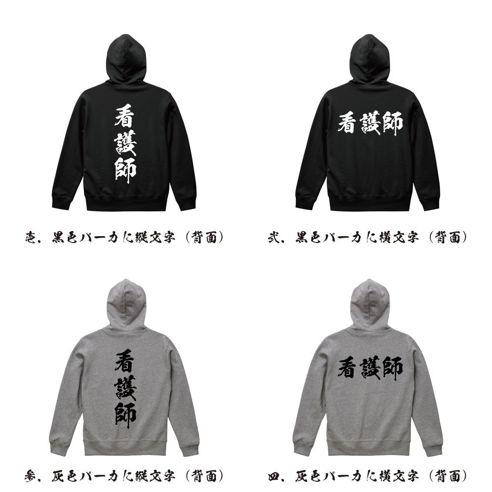 看護師 オリジナル パーカ 書道家が書く プリント フルジップ パーカー S M L XL XXL 110 130 150 【 職業 】
