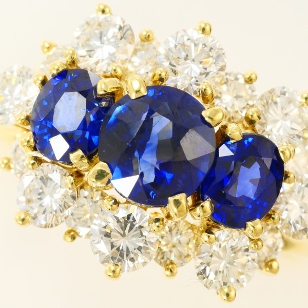 K18YG リング 指輪 14号 ロイヤルブルー サファイア 1.31 0.53 0.52 ダイヤ 鑑別書 総重量約6.9g 中古 美品 送料無料 | |