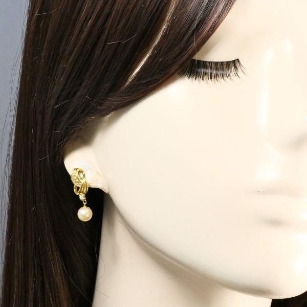 K18YG イヤリング パール (真珠) ダイヤ 0.08×2 総重量約5.3g 中古 美品 送料無料 | |