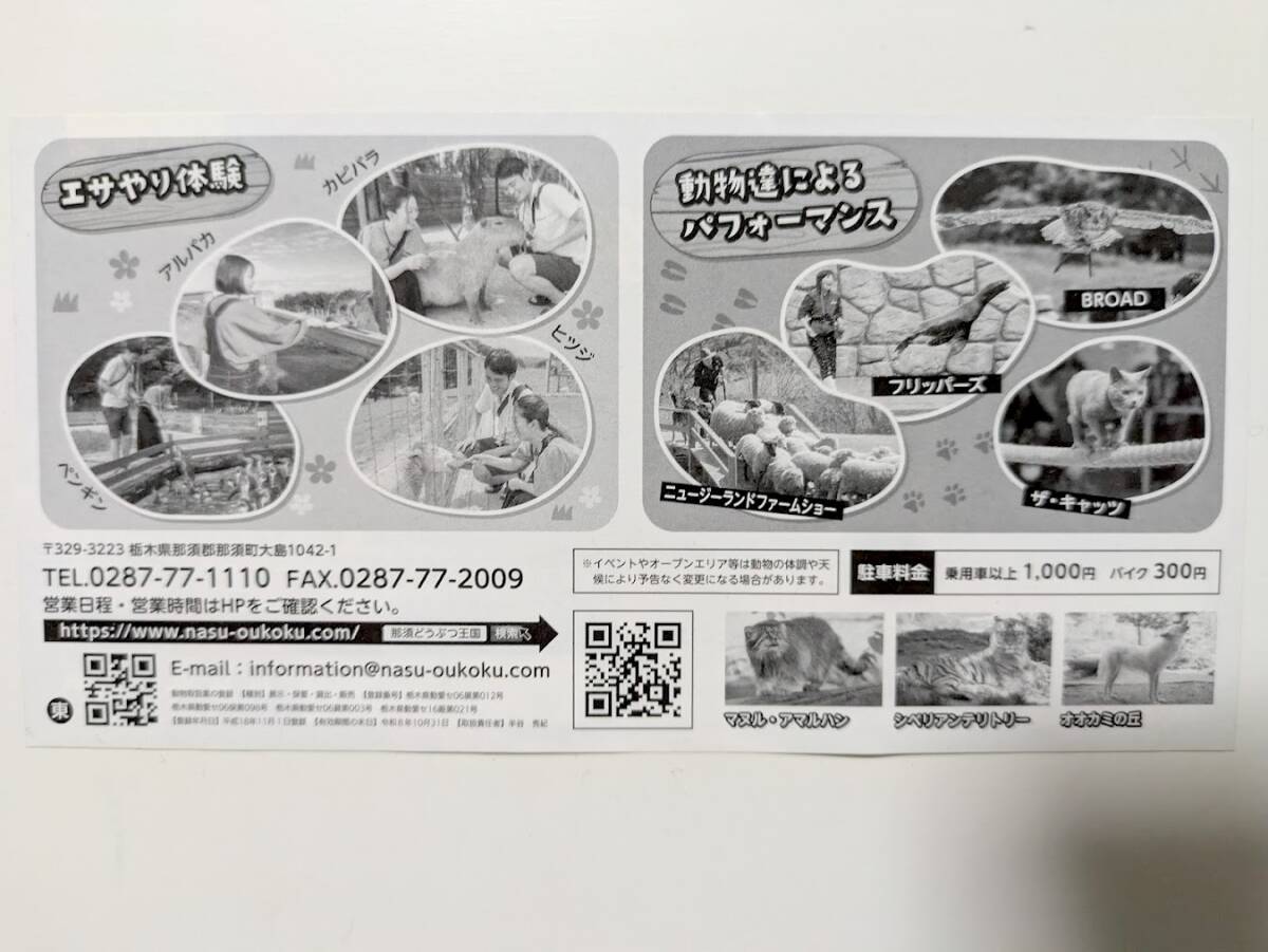 ★施設名: 那須どうぶつ王国 発送はポスト投函です。 エリア...関東 枚数...2枚