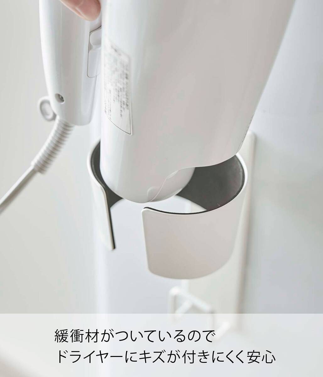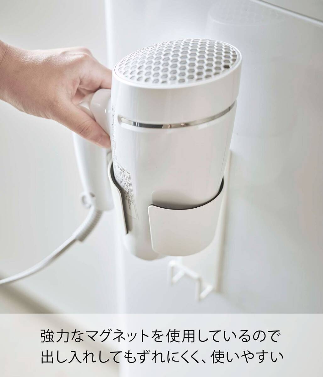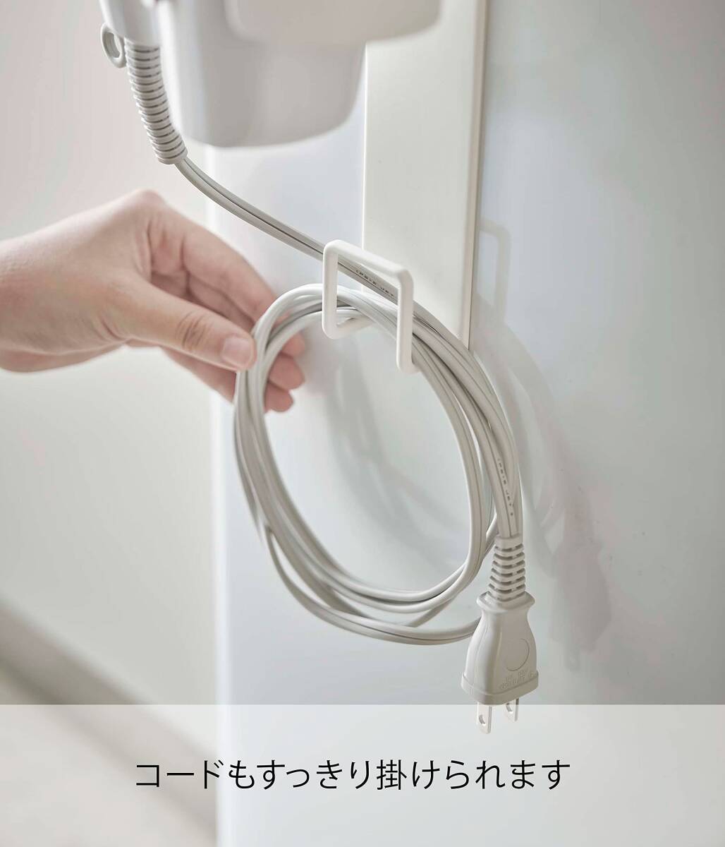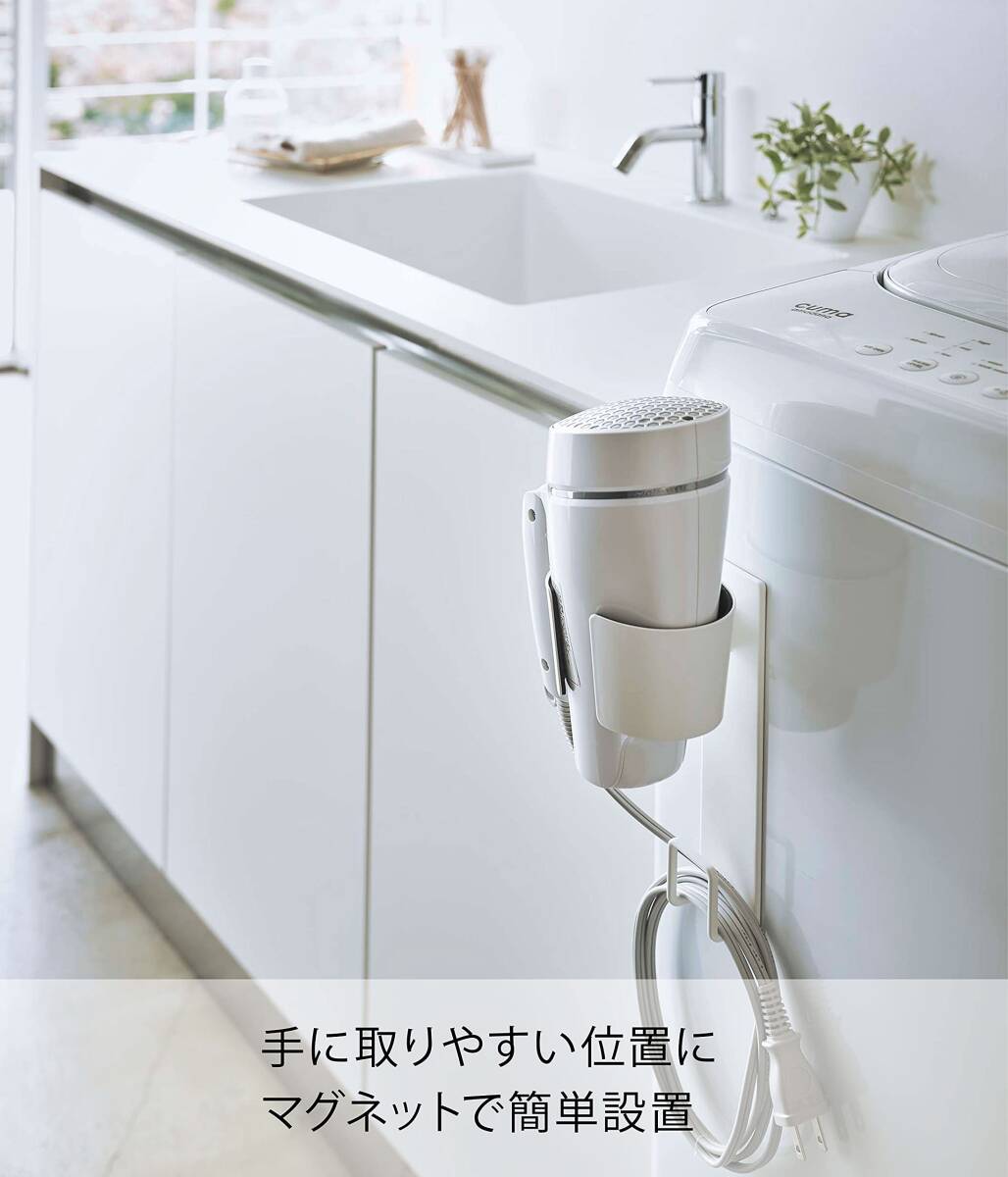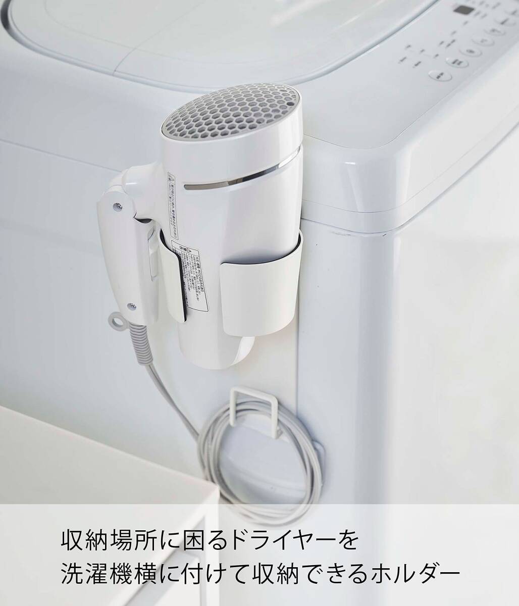 強力マグネットでヘアードライヤーを洗濯機に付けて収納できるドライヤーホルダー。収納場所に困るドライヤーを洗濯機横に収納! 省スペースなドライヤーホルダー。コードもスッキリ掛けられます。