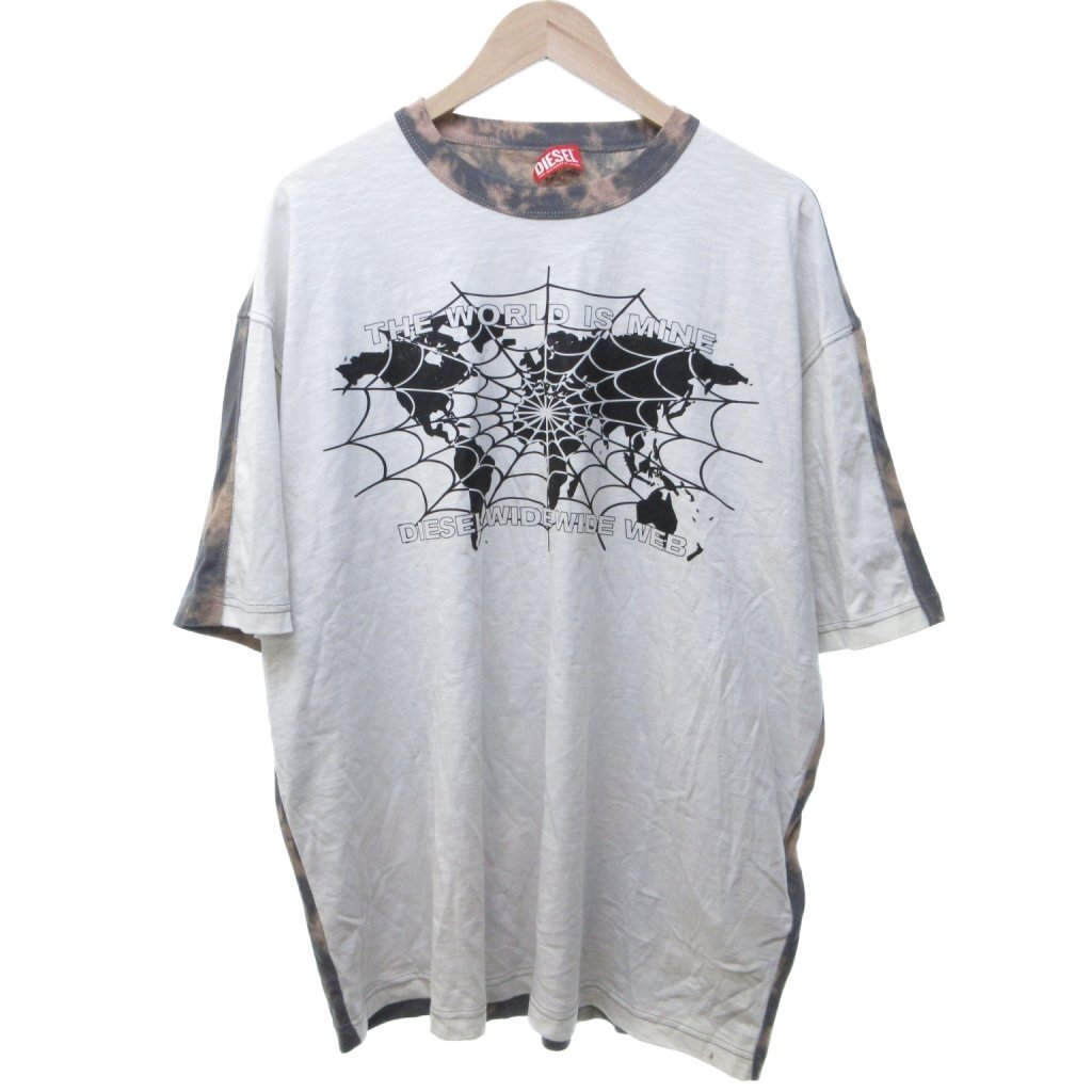 ディーゼル DIESEL タイダイ柄 Tシャツ カットソー 半袖 プリント バイカラー 白 ホワイト 茶 ブラウン XL IBO79