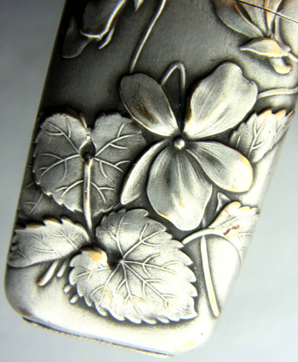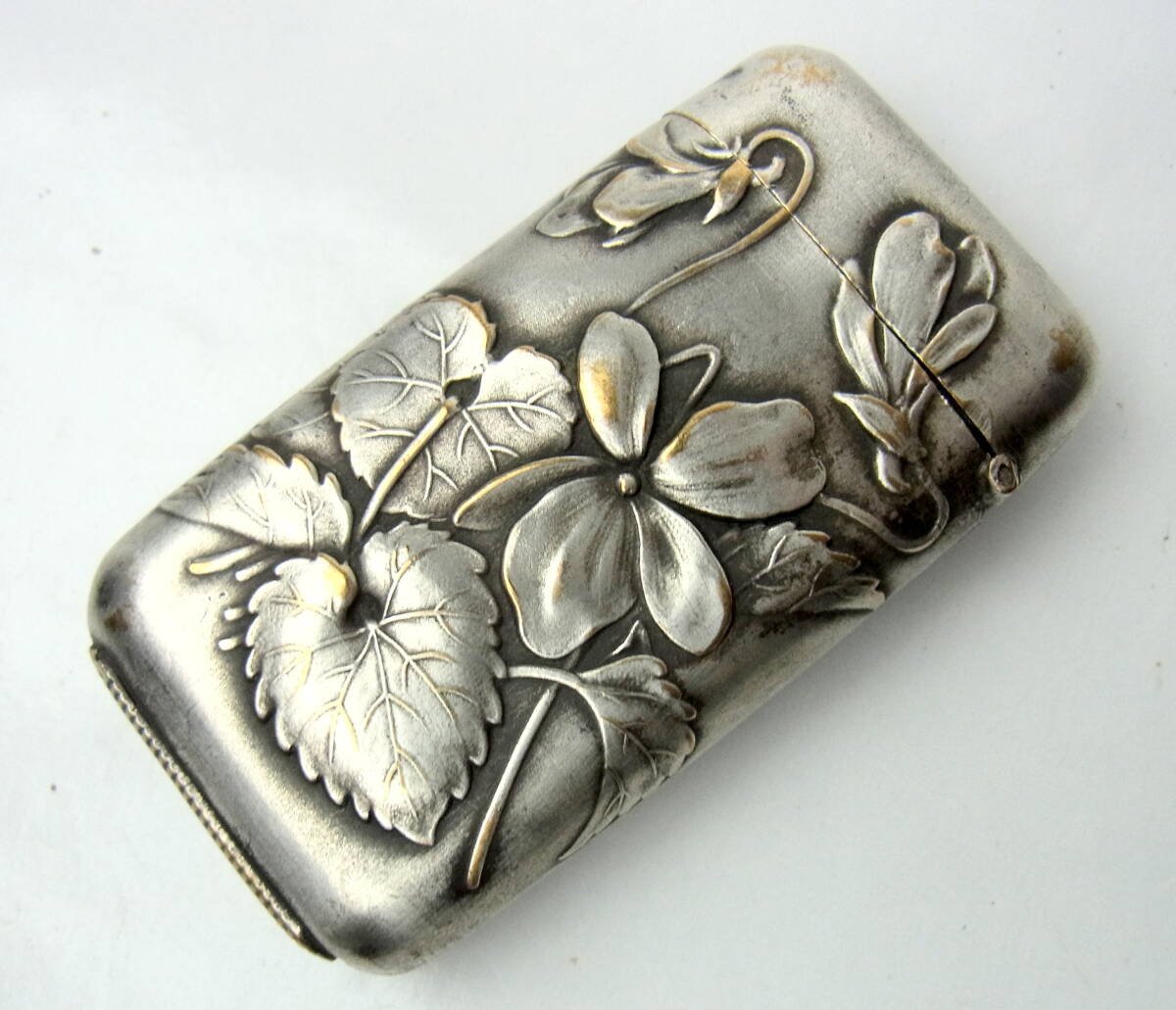 優美 フランスアンティーク 菫のマッチケース ヴェスタケース 細密意匠 スミレ シルバープレート アールヌーヴォー クロネコ宅急便