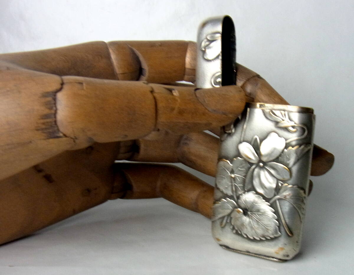 優美 フランスアンティーク 菫のマッチケース ヴェスタケース 細密意匠 スミレ シルバープレート アールヌーヴォー
