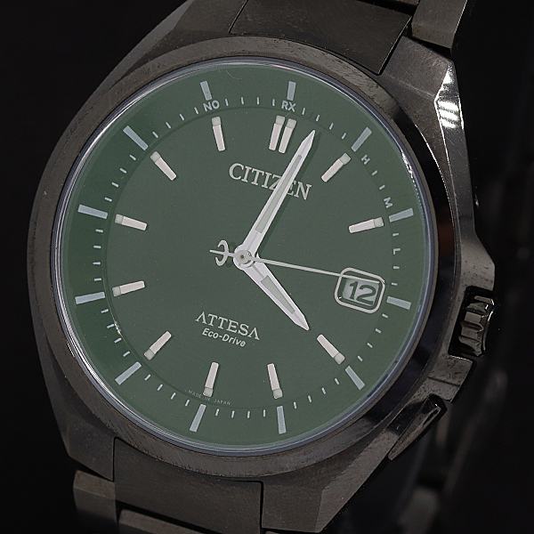 1円 稼働 シチズン アテッサ H110-T016294 電波ソーラー 黒文字盤 メンズ腕時計 0506000 9RET MST