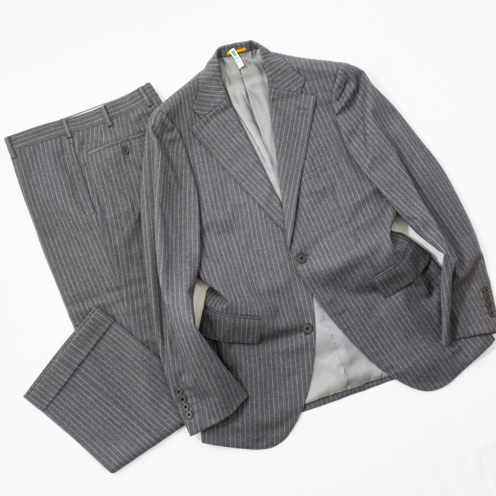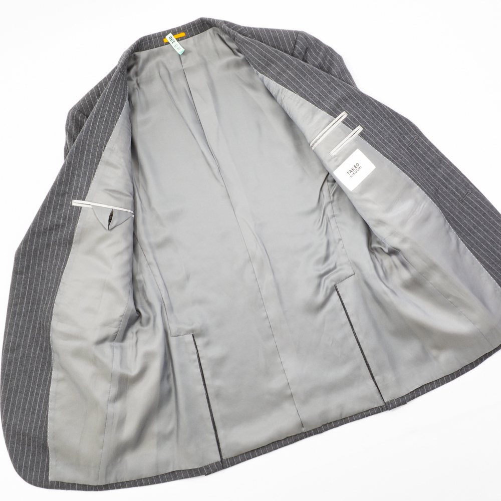 上質日本製『TAKEO KIKUCHI』セットアップスーツ 2(M相当) グレー 総裏地 タケオキクチ メンズ 管理244