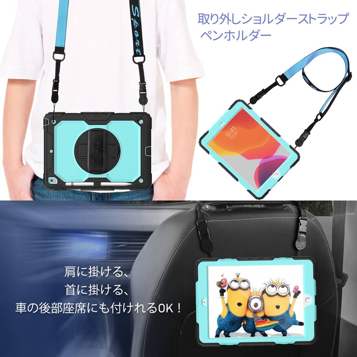 「ハンド&ショルダーストラップ」:バックカバーの回転盤にハンドストラップがあります。その中にお手を入れると、何の力もかからずおタブレットの重心をしっかり掴めます。また、最長49インチの可調整のショルダーストラップが配達されていて、それをケースに繋ぐと、ご設備の携帯はとても便利になります。