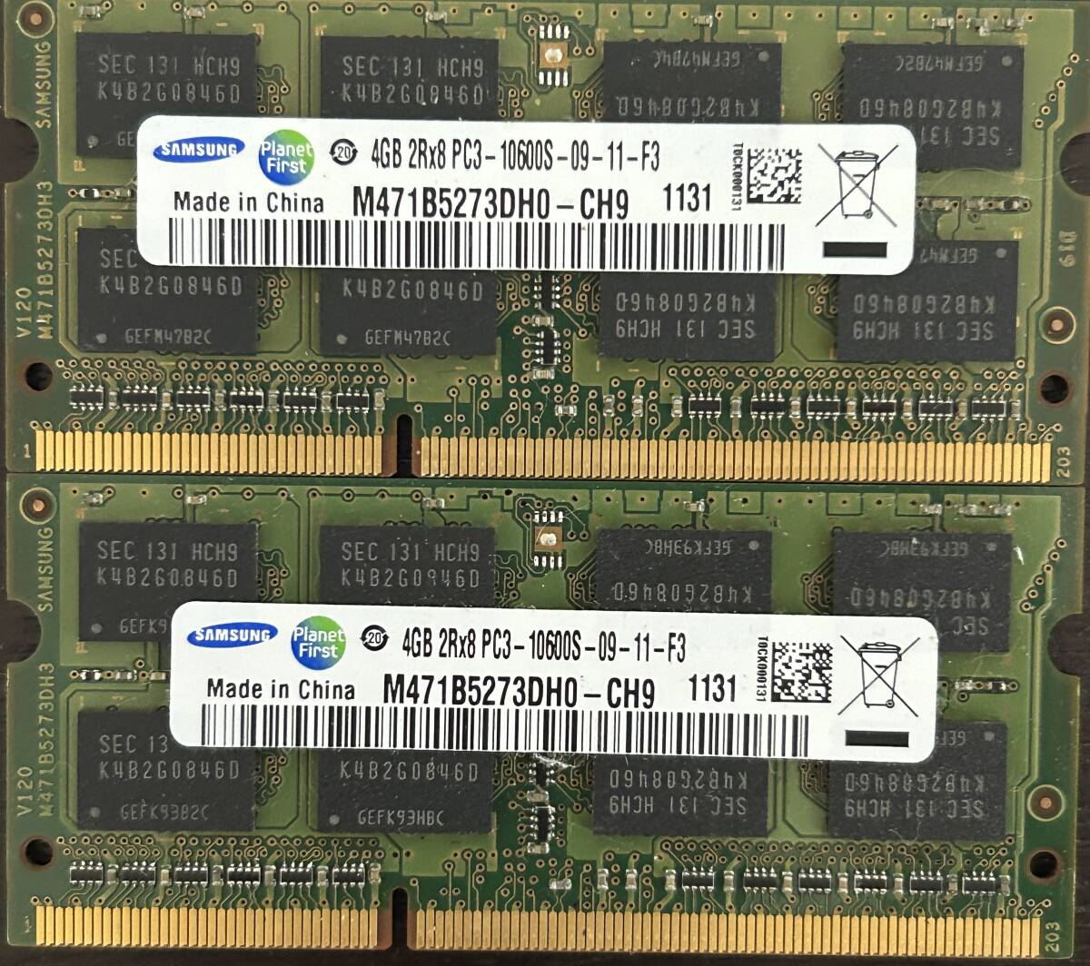 即決 動作確認済み SAMSUNG サムスン SO-DIMM 204pin DDR3 PC3-10600S 4GB×2枚 ノートパソコン用   707