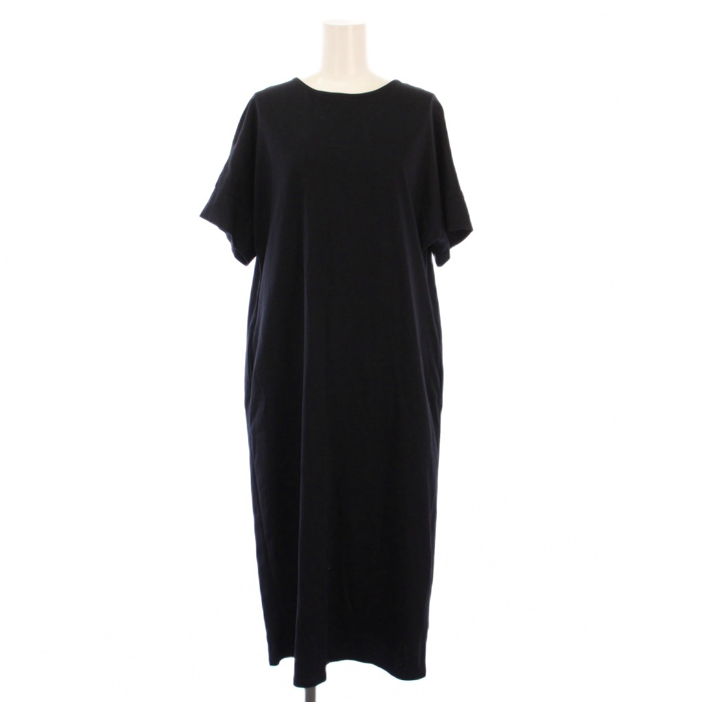 ソージュ SOEJU ワンピース ミモレ ロング 半袖 クルーネック ストレッチ 無地 F 紺 ネイビー S-00-OP-040 /BB レディース