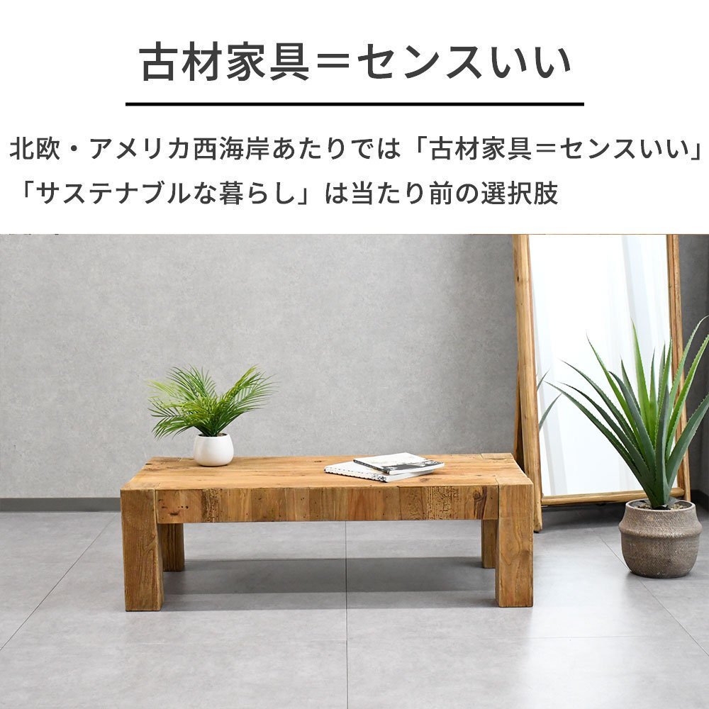 【限定送料無料 新品 展示処分品】古木リサイクルパイン材117cm幅センターテーブル |
