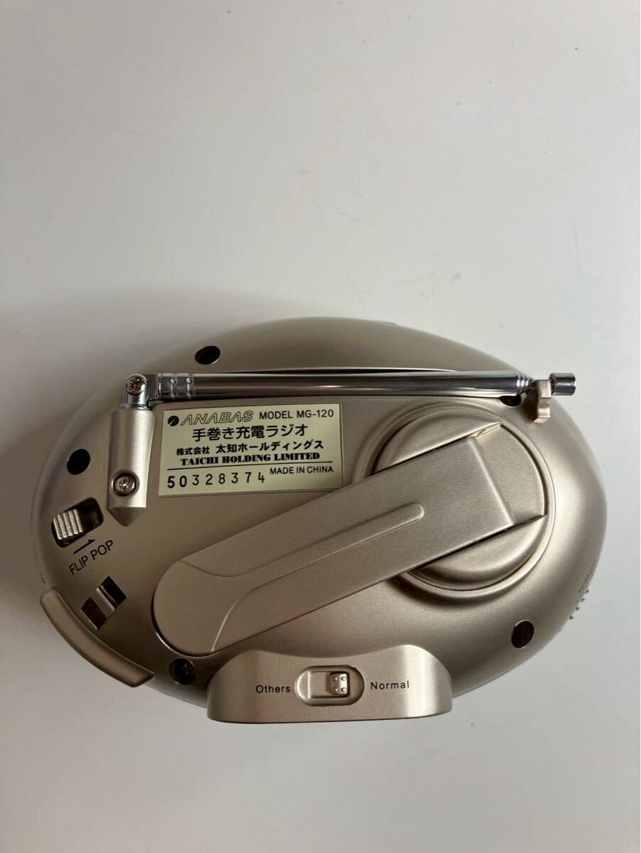 アナバスの乾電池不要の手まわし充電ラジオです。
