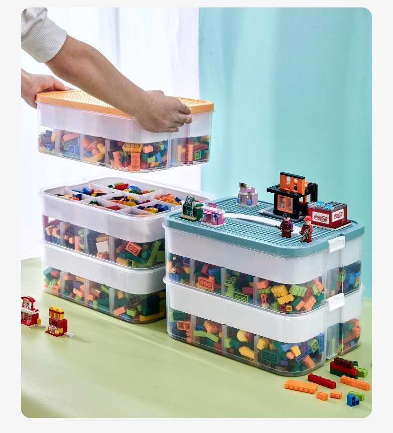 収納ボックス 3層式 おもちゃ 収納 レゴ ブロック 収納 ケース レゴ 収納ケース 仕切り キッズ お片付け ブロック 593or(オレンジ)