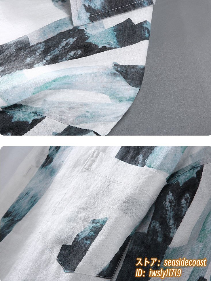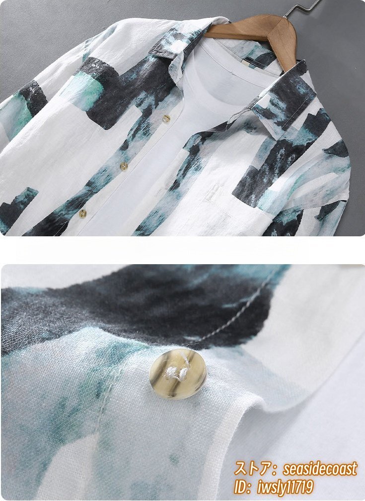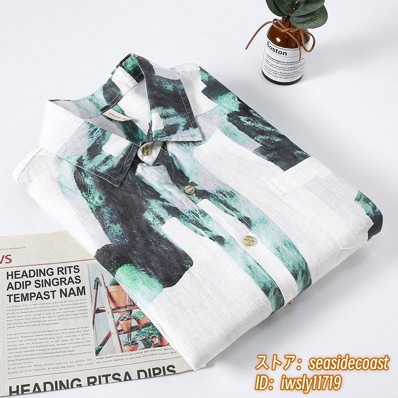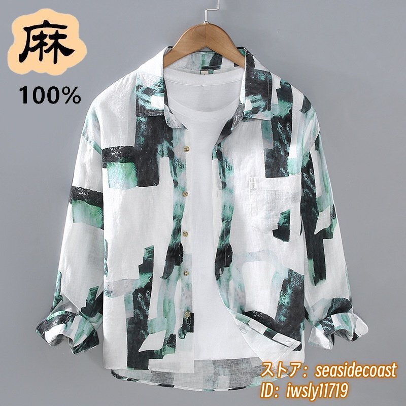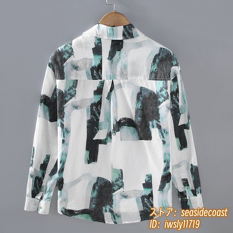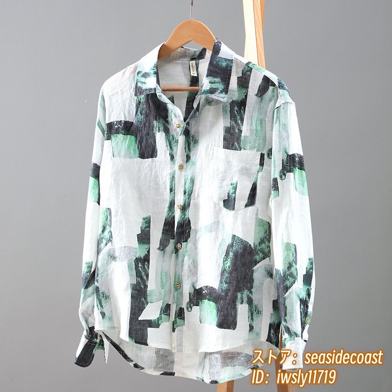 正規品*リネンシャツ 長袖シャツ 麻100% メンズシャツ 花柄 ヴィンテージ 新品*紳士 お洒落 ワイシャツ 超希少 レギュラーシャツ 総柄 XL
