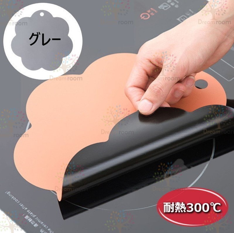 フラワーモチーフ IHヒーター用 ガラス繊維製 焼け焦げ防止 保護カバー 1枚 【D-121 グレー】IHマット 汚れ防止シート 耐熱