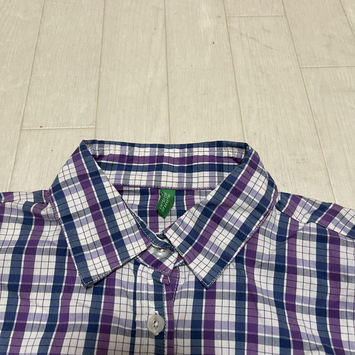 和849★ UNITED COLORS OF BENETTON. ベネトン ボタンシャツ チェック 長袖 S パープル ネイビー ホワイト レディース