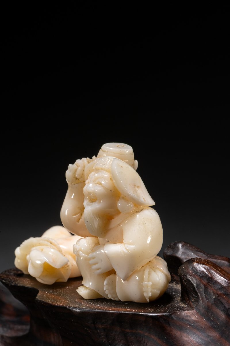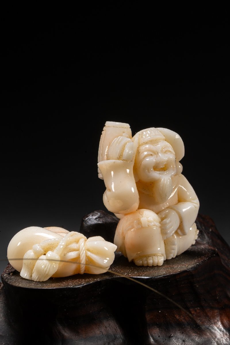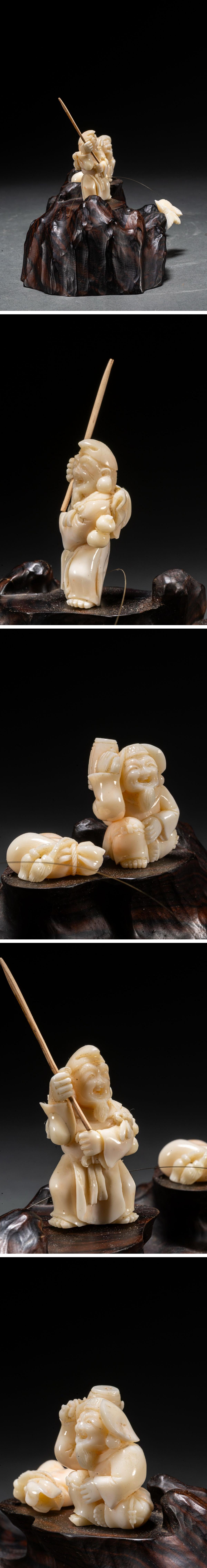 【清】某有名オークション購入 天然材 赤珎材 大黒天恵比寿置物 高級美術品 時代コレクション7L9-49S2